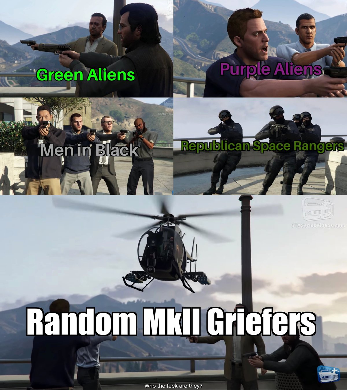 Войны пришельцев — новое развлечение, придуманное игроками. Это не эвент, запущенный разработчиками, или что-то в этом роде. Часть игроков просто решила, что будет забавно надеть костюмы, вооружиться и устроить землянам веселую жизнь.