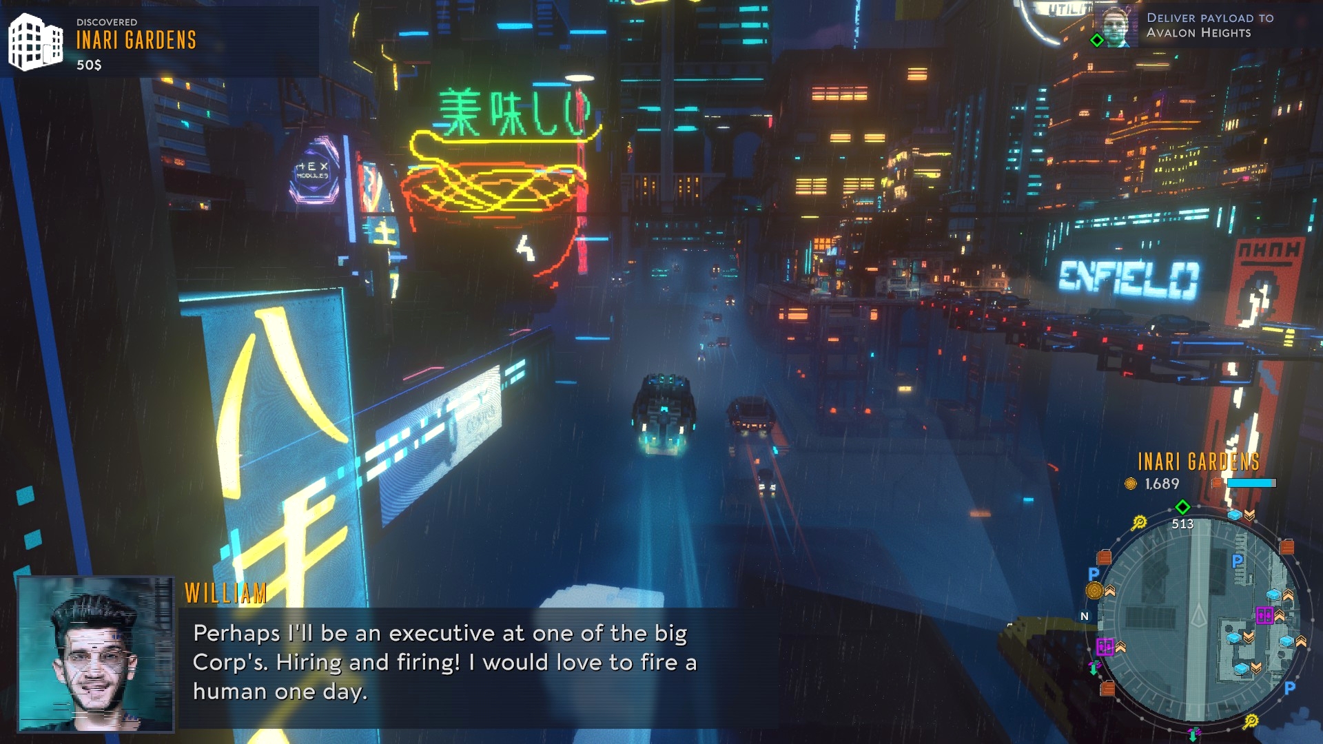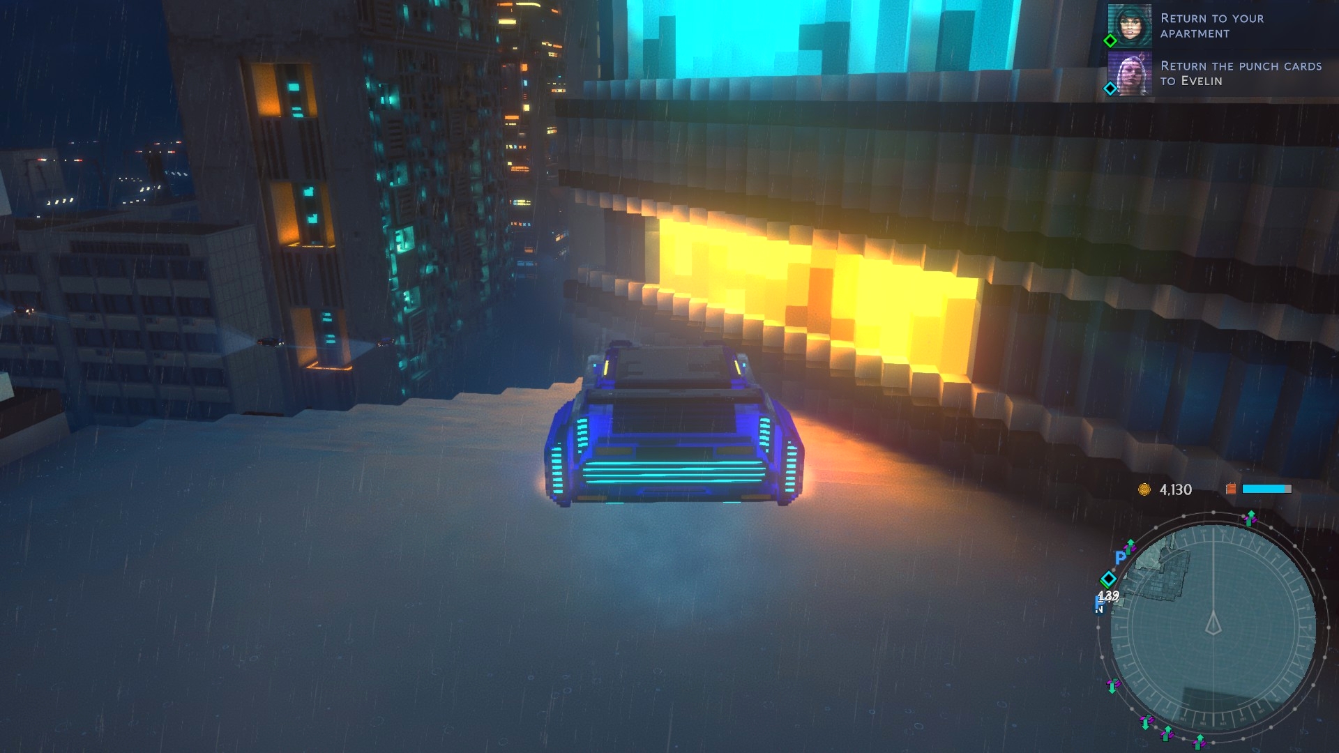 Тем не менее, за время разработки Cloudpunk, авторы не только не отказались от своей идеи, но и успешно доделали игру, придав ей некой глубины и своей изюминки. Здесь, правда, стоит сделать небольшое отступление от темы: Сама по себе игра была создана небольшой компанией и является типичным представителем инди игр, поэтому и спрос с неё будет не самый строгий.