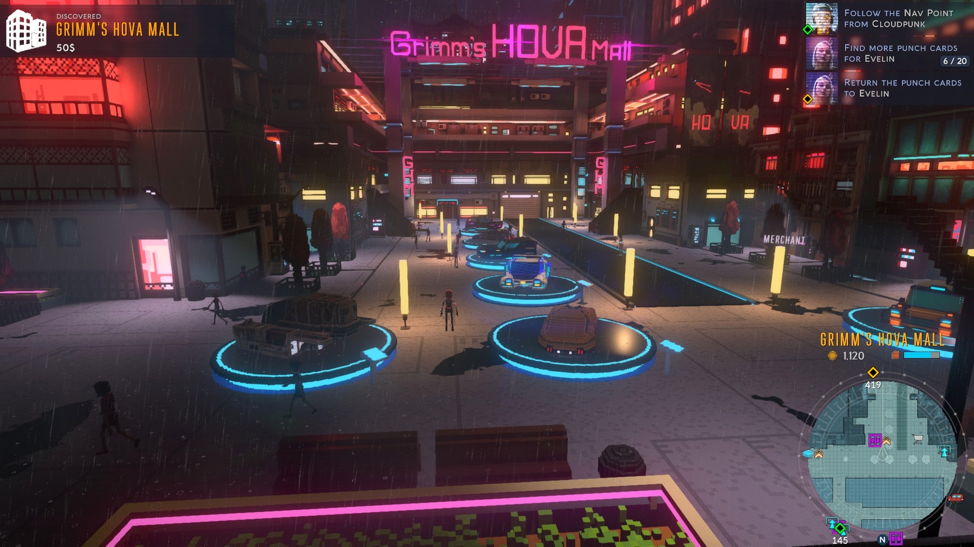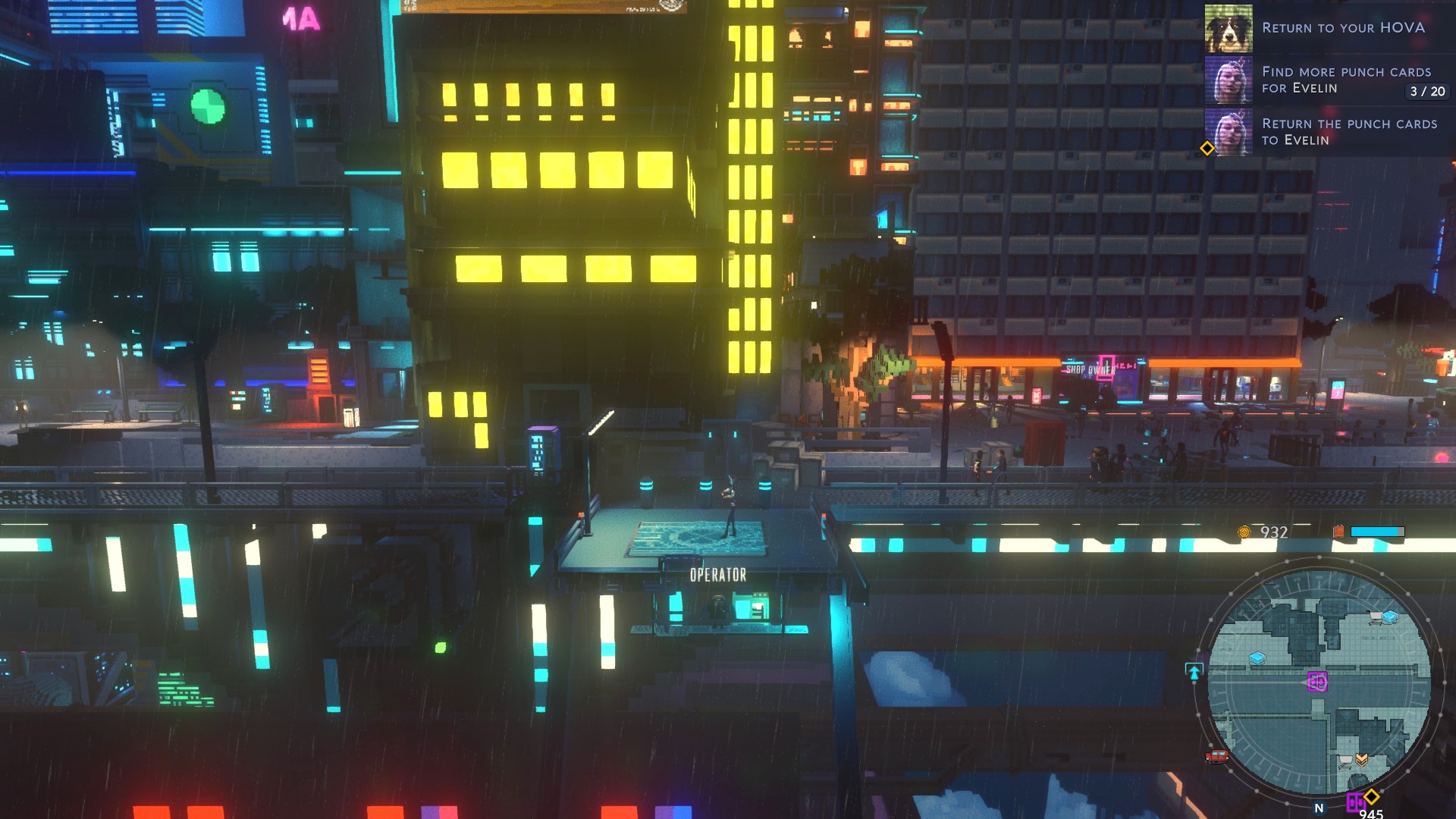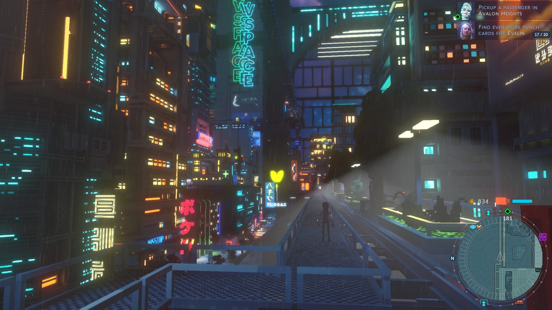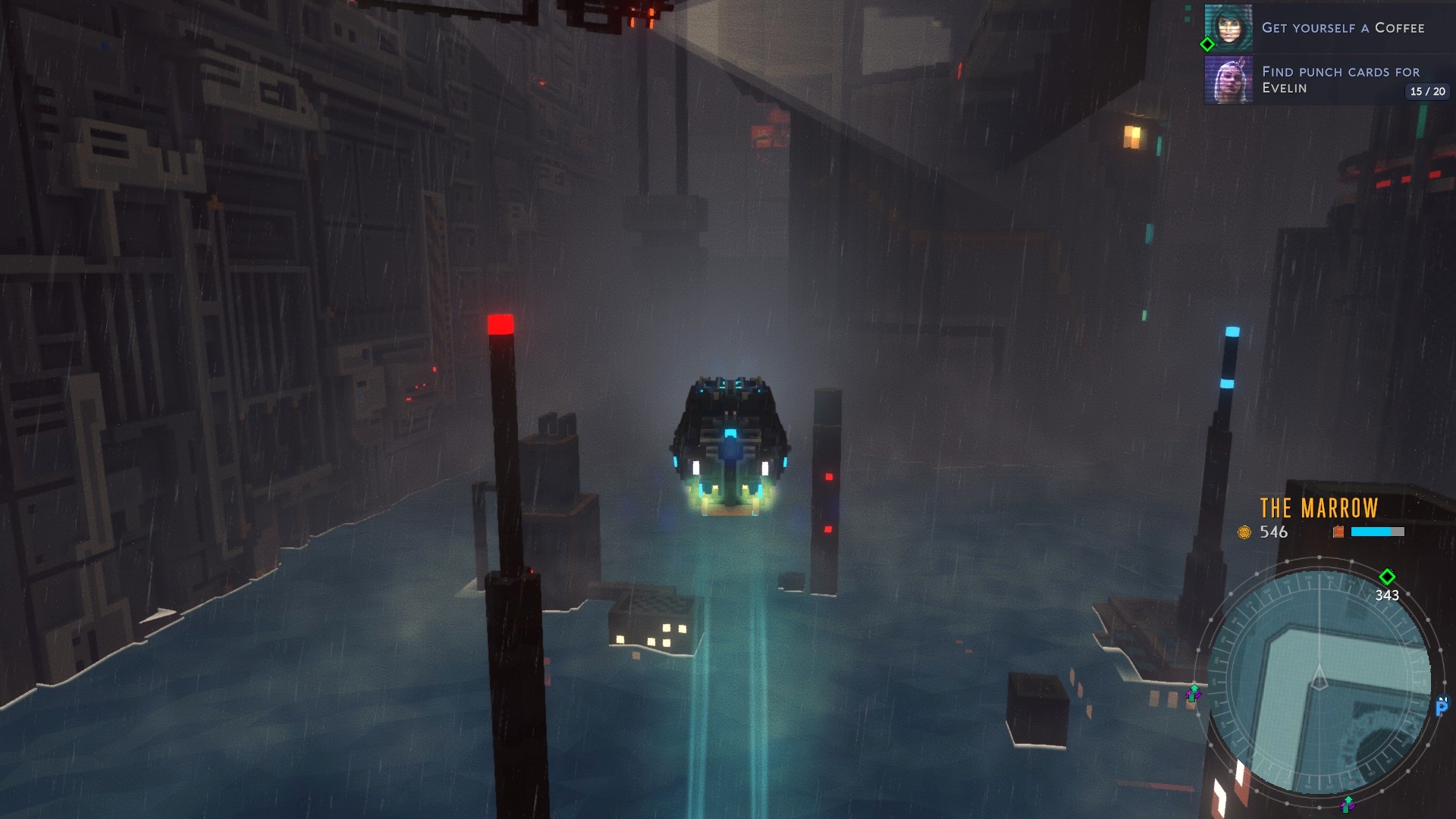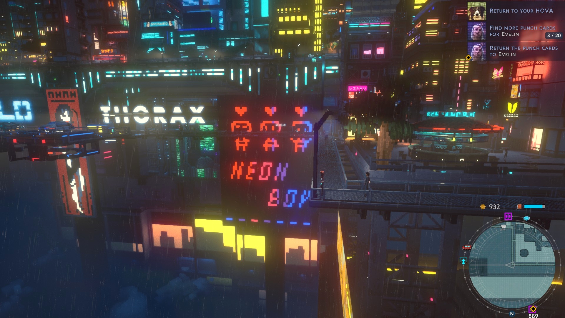 Означает ли это, что визуальная часть в игре находится на высшем уровне? Ну, нет. Не совсем. Всё-таки воксельная графика до сих пор значительно уступает традиционным способам разработки с применением полигональных технологий. И тем не менее, картинка в Cloudpunk, к её чести, совсем не режет глаз, а большего от инди игры, обычно, и не требуют.