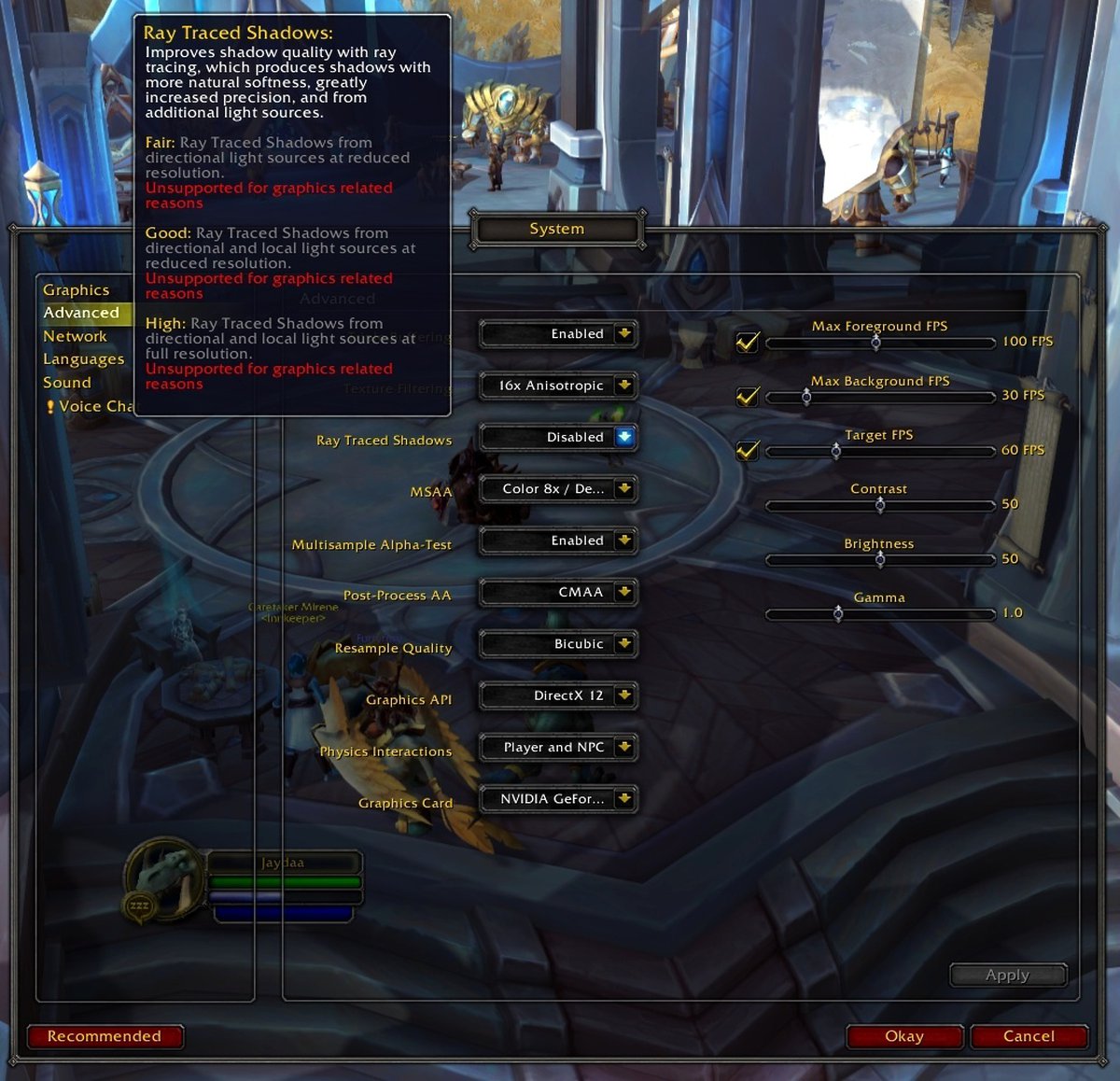 В середине апреля в альфа-версии World of Warcraft Shadowlands нашли параметры, указывающие на появление поддержки трассировки лучей. В последнем билде опции трассировки — с подробным описанием их влияния — появились в настройках.