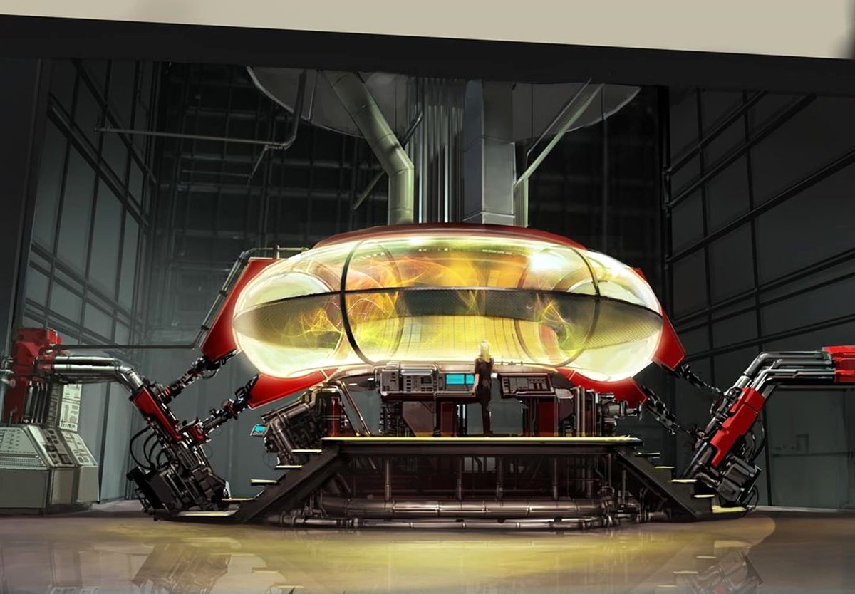 - Другие костюмы и реакторы на ранних концептах первых частей «Железного человека»