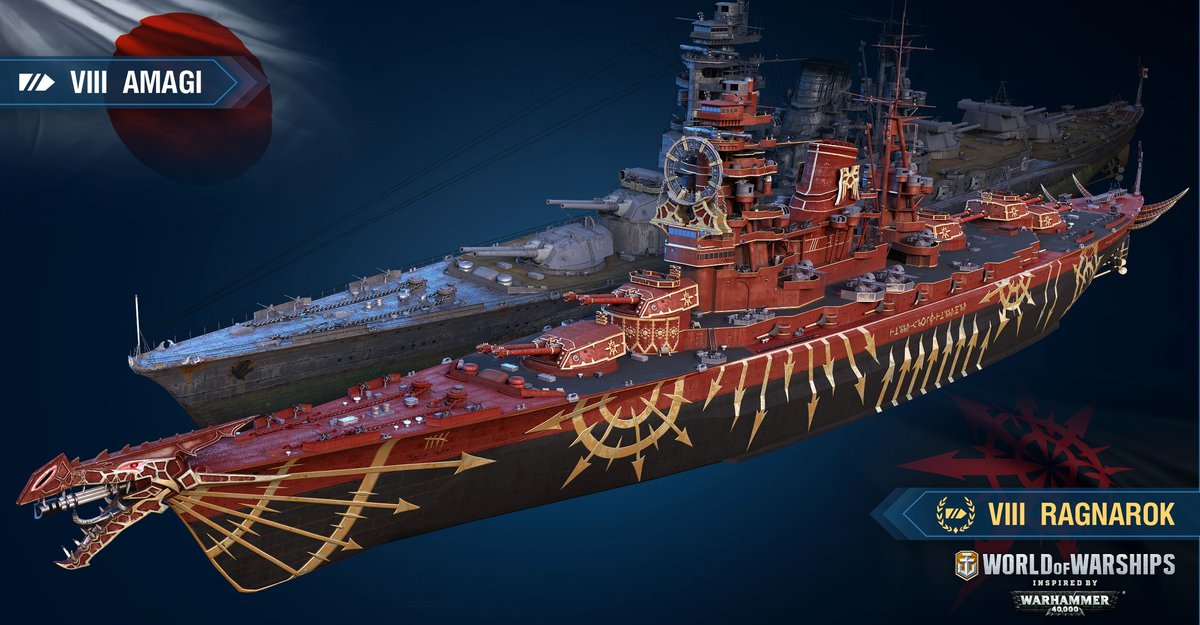 Разработчики World of Warships запускают кроссовер со вселенной Warhammer 40.000. В игре появятся тематические облики для японского линейного крейсера типа «Амаги».