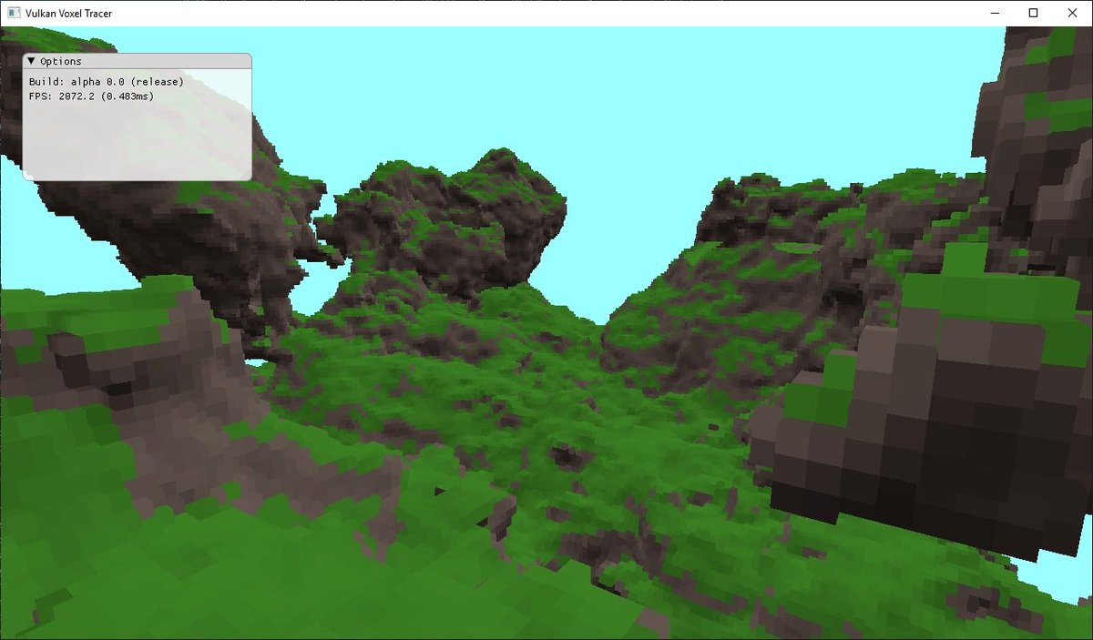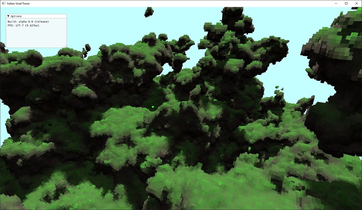 Реализацию такого движка Джон начал с воксельного трассировщика, работающего на базе API Vulkan и использующего аппаратное ускорение Nvidia RTX. За два с небольшим месяца он превратил его в целый воксельный мир.
