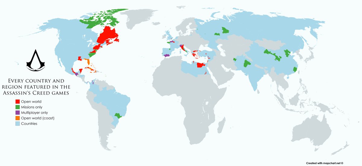 Карта: все страны и места, где бывали герои игр Assassin's Creed