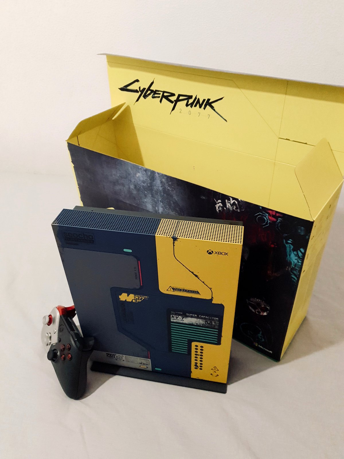 На Reddit было опубликовано несколько фотографий с распаковкой устройства. Теперь Xbox One X в стиле Cyberpunk 2077 можно рассмотреть со всех сторон, от меток на корпусе до коробки, которую прежде почти не показывали.