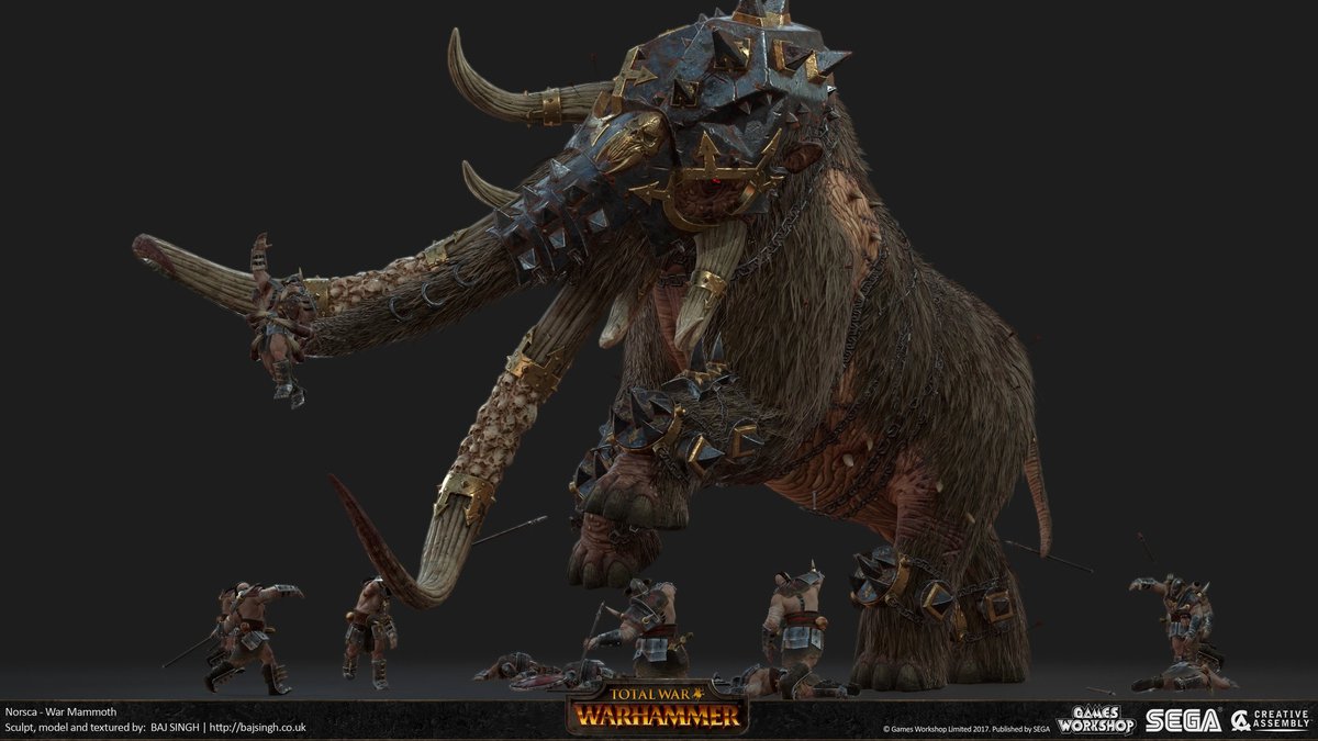 С этими мамонтами, вспоминает ведущий художник Warhammer Бадж Сингх, разработчики хлебнули горя. В игре уже были очень большие существа, но не было мохнатых; оказалось, что инструментарий не слишком приспособлен для создания волосатых существ.