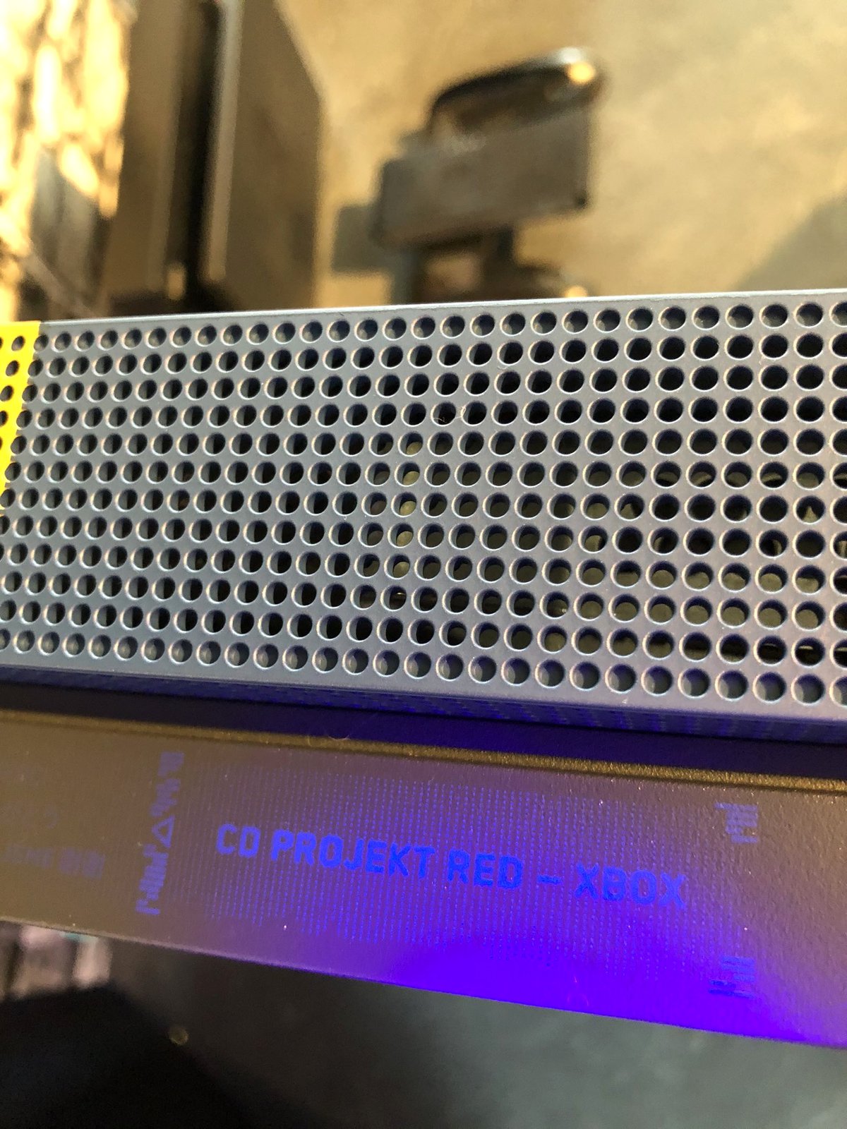 На прошлой неделе выяснилось, что на консоли Xbox One X в стиле Cyberpunk 2077 есть скрытое сообщение. Чтобы увидеть его, нужно было подсветить консоль ультрафиолетом; ее владелец, обнаруживший пасхалку, пересказал ее суть, но не показал, о чем идет речь.