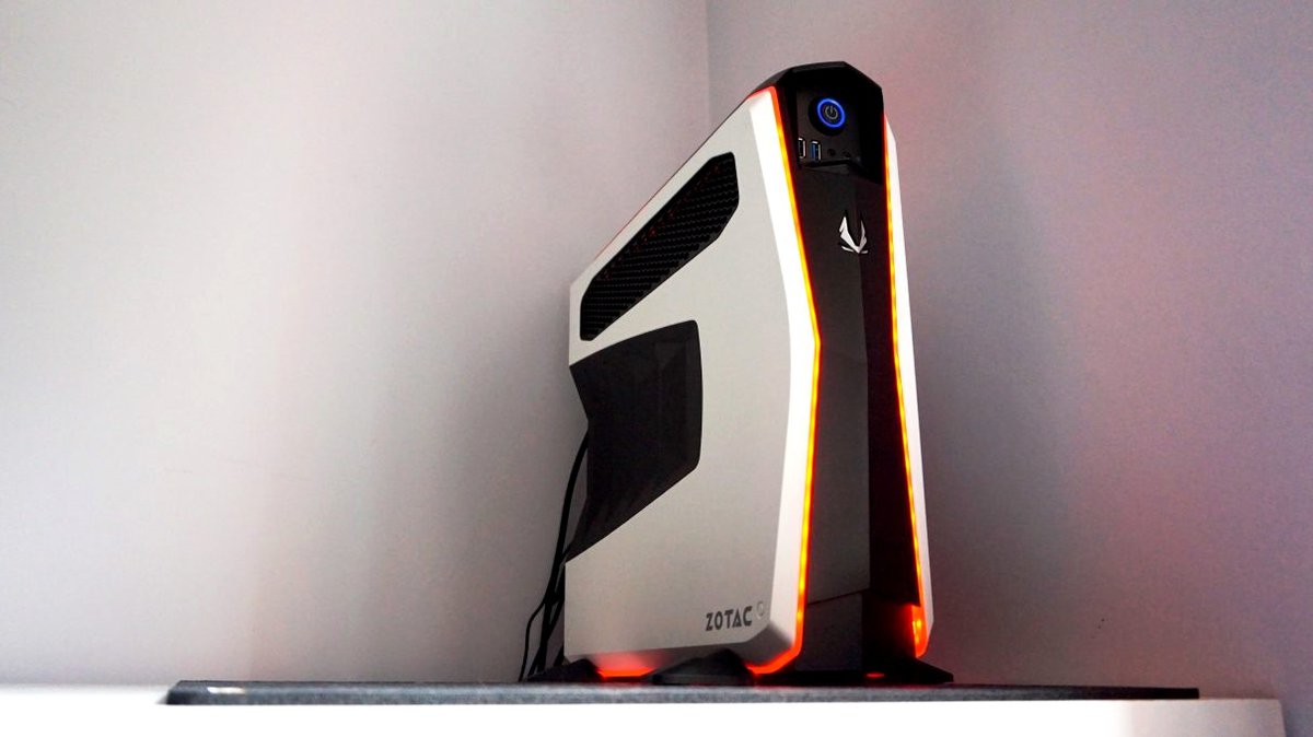Это игровой мини-компьютер, выпущенный Zotac пару лет назад. Он отличается небольшими размерами, системные блок 12 сантиметров в ширину и 41 сантиметр в высоту — по приблизительным оценкам, PlayStation 5 будет лишь немногим меньше.