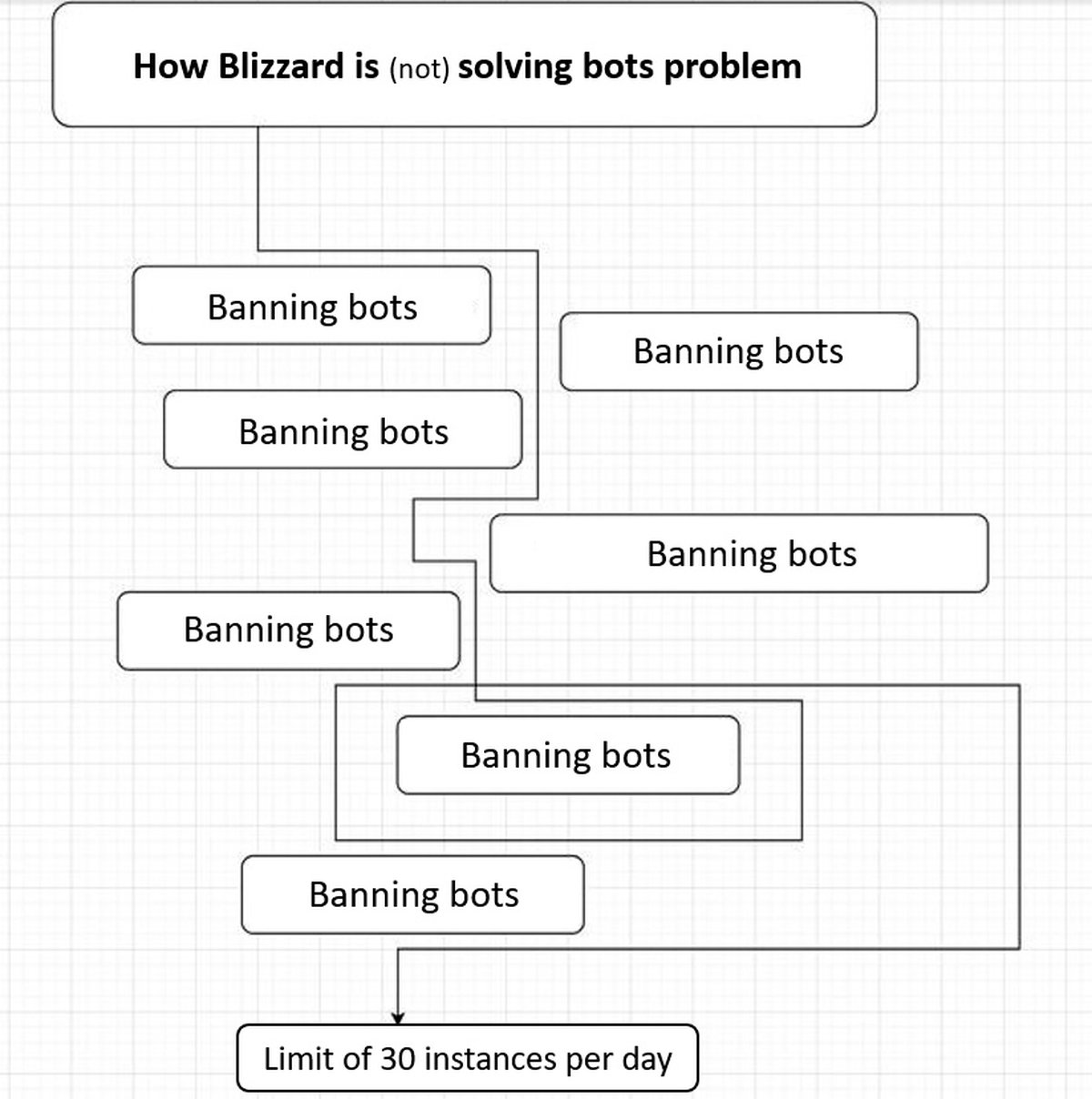 На классических серверах World of Warcraft введено ограничение: теперь игроки могут ежедневно заходить максимум в 30 рейдов или подземелий. С помощью такого ограничения разработчики пытаются противостоять большому количеству фарм-ботов.
