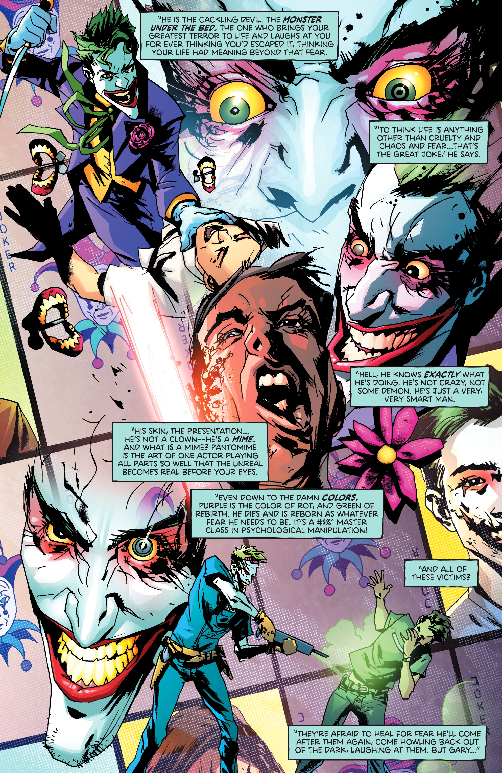Какой-то подросток боялся стать клоуном в школе, Джокер нанёс ему свой макияж. Девушка боялась молний - потыкал неё электрошоком. Текущий клиент боялся за свои зубы, и с ним обошлись по тому же принципу. Потом пострадавшие боятся избавиться от следов воздействия, ведь клоун может прийти снова.