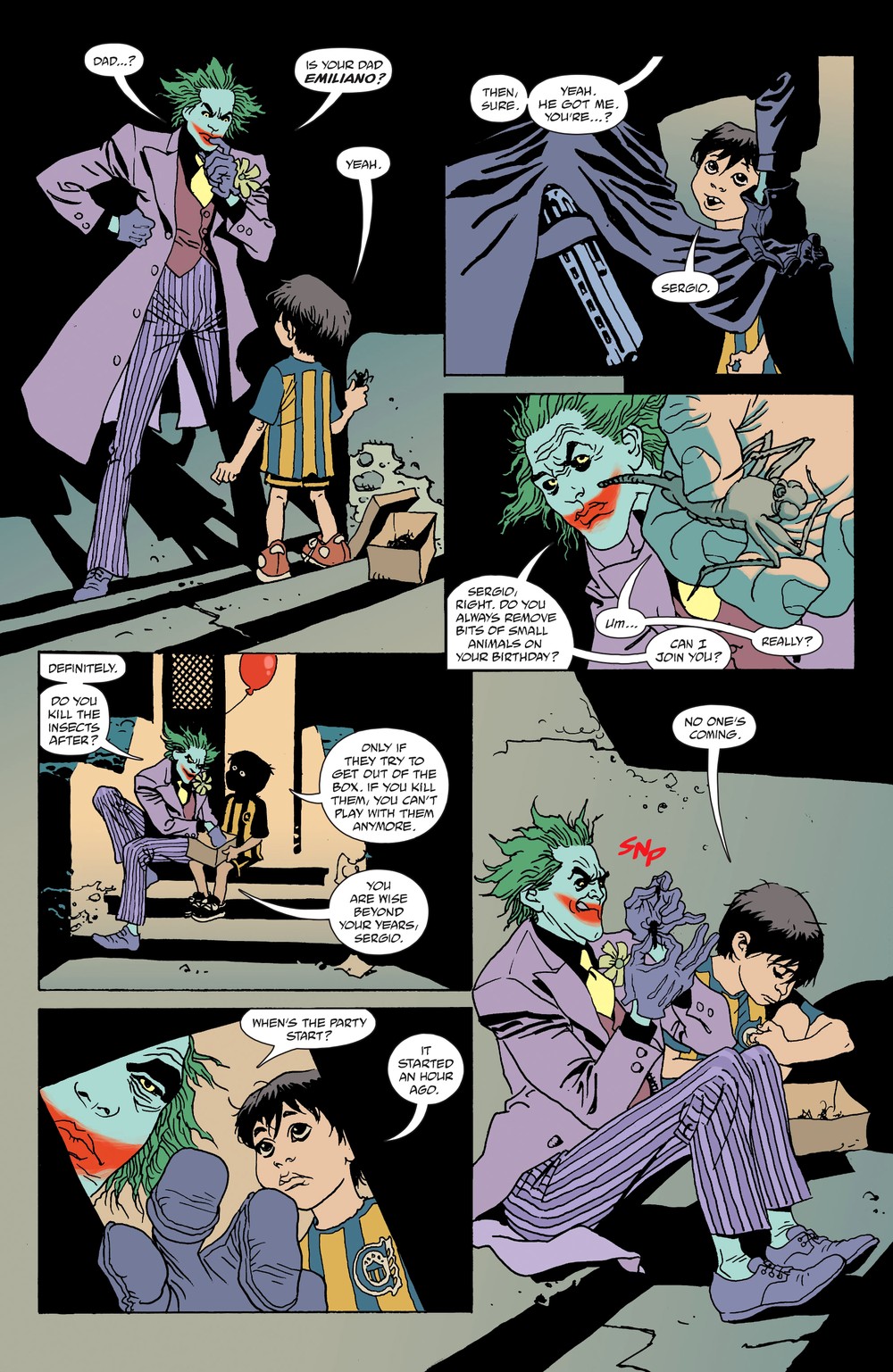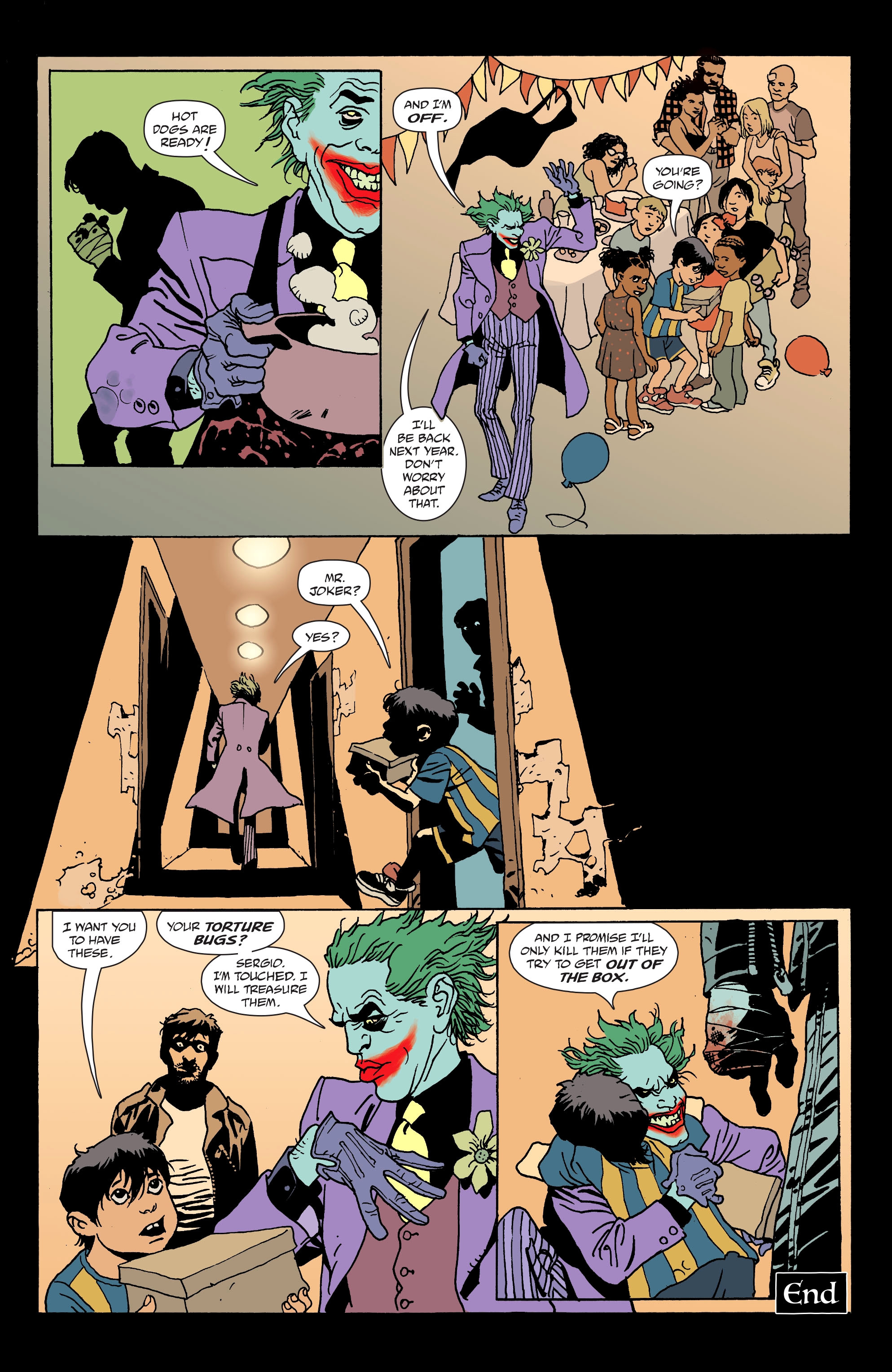 Джокер приходит на хату гангстера, который его кинул, и застаёт там его сына. У пацана день рождения, однако никто не пришёл, поэтому компании клоуна он очень рад. Мальчик делится с Джеем своим увлечением: он ловит жуков в коробку и отрывает им конечности, убивает же насекомых, только если те пытаются сбежать.