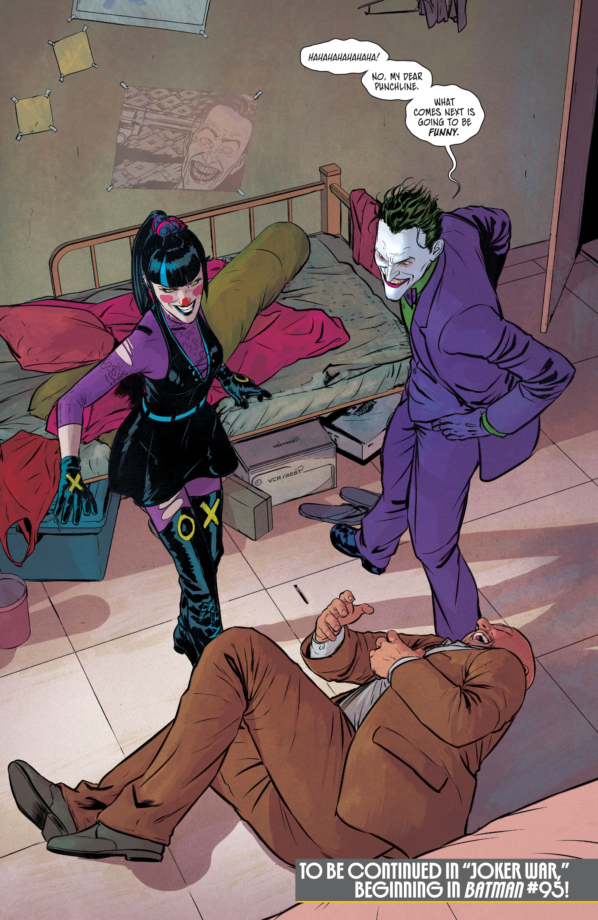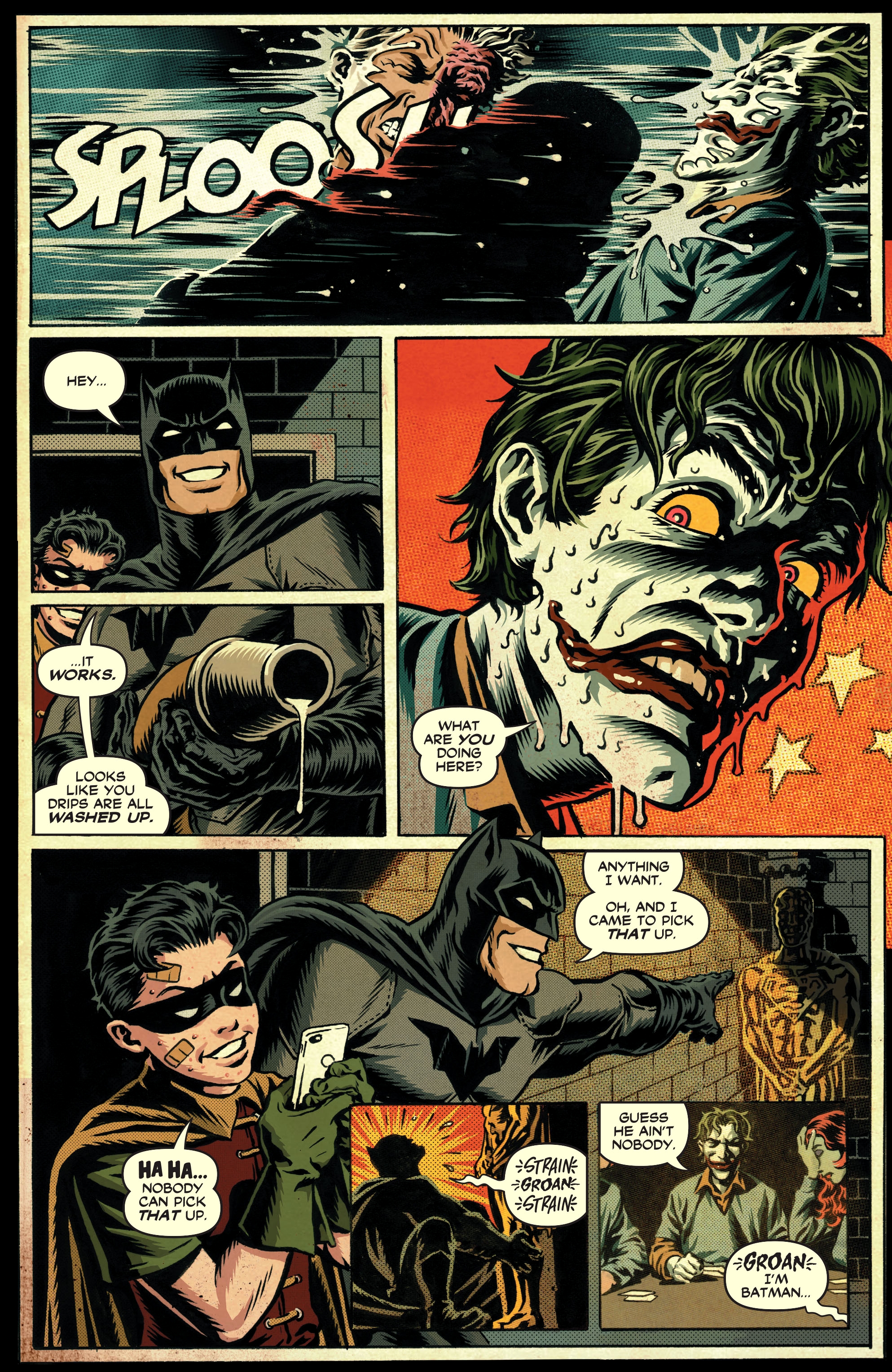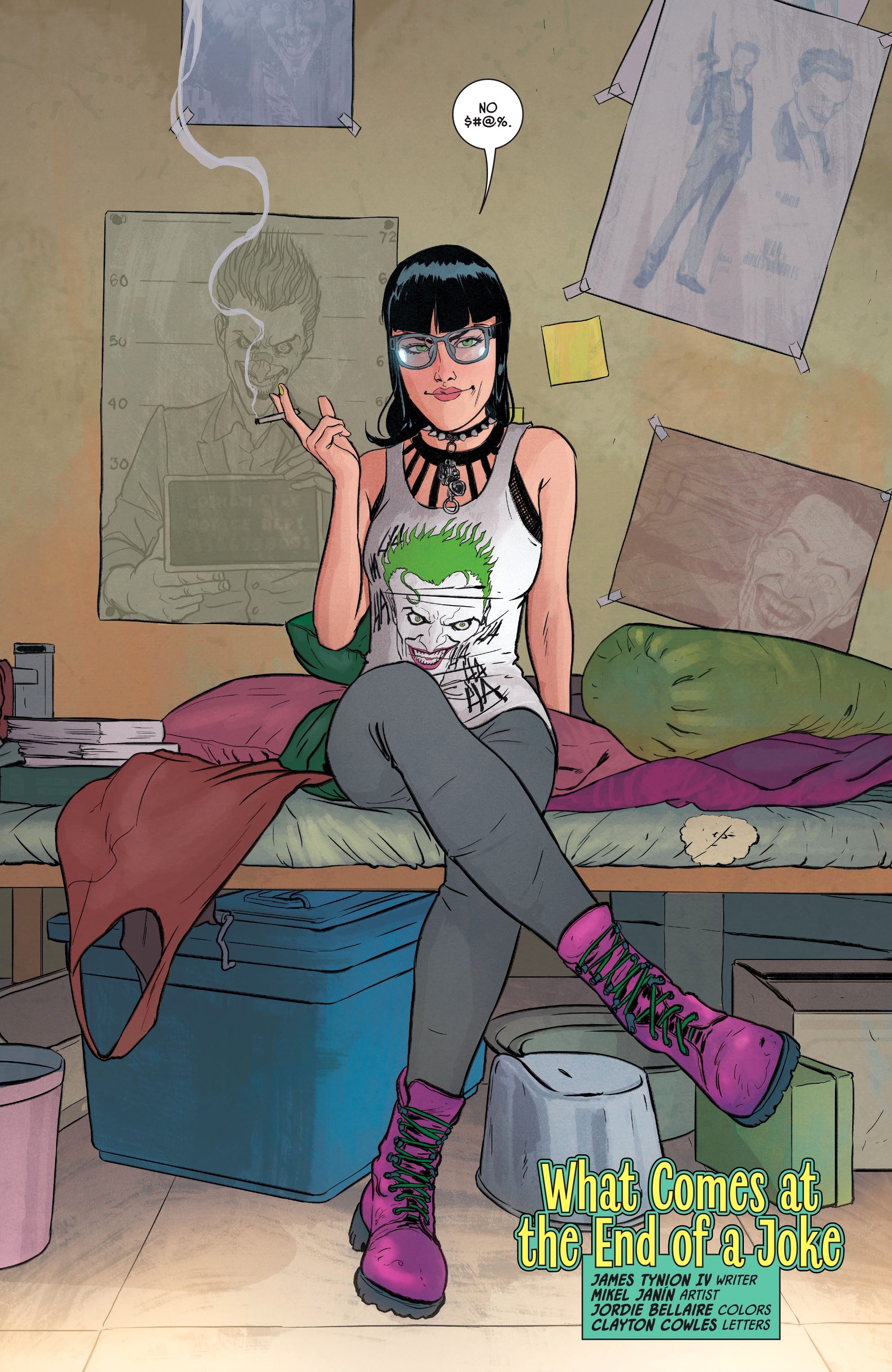 Оказывается, всё это время шкафу сидел Джей. Он устроил проверку, готова ли новая протеже, Панчлайн, к серьёзному, точнее по-настоящему забавному делу. Продолжение читайте в томе Бэтмена.