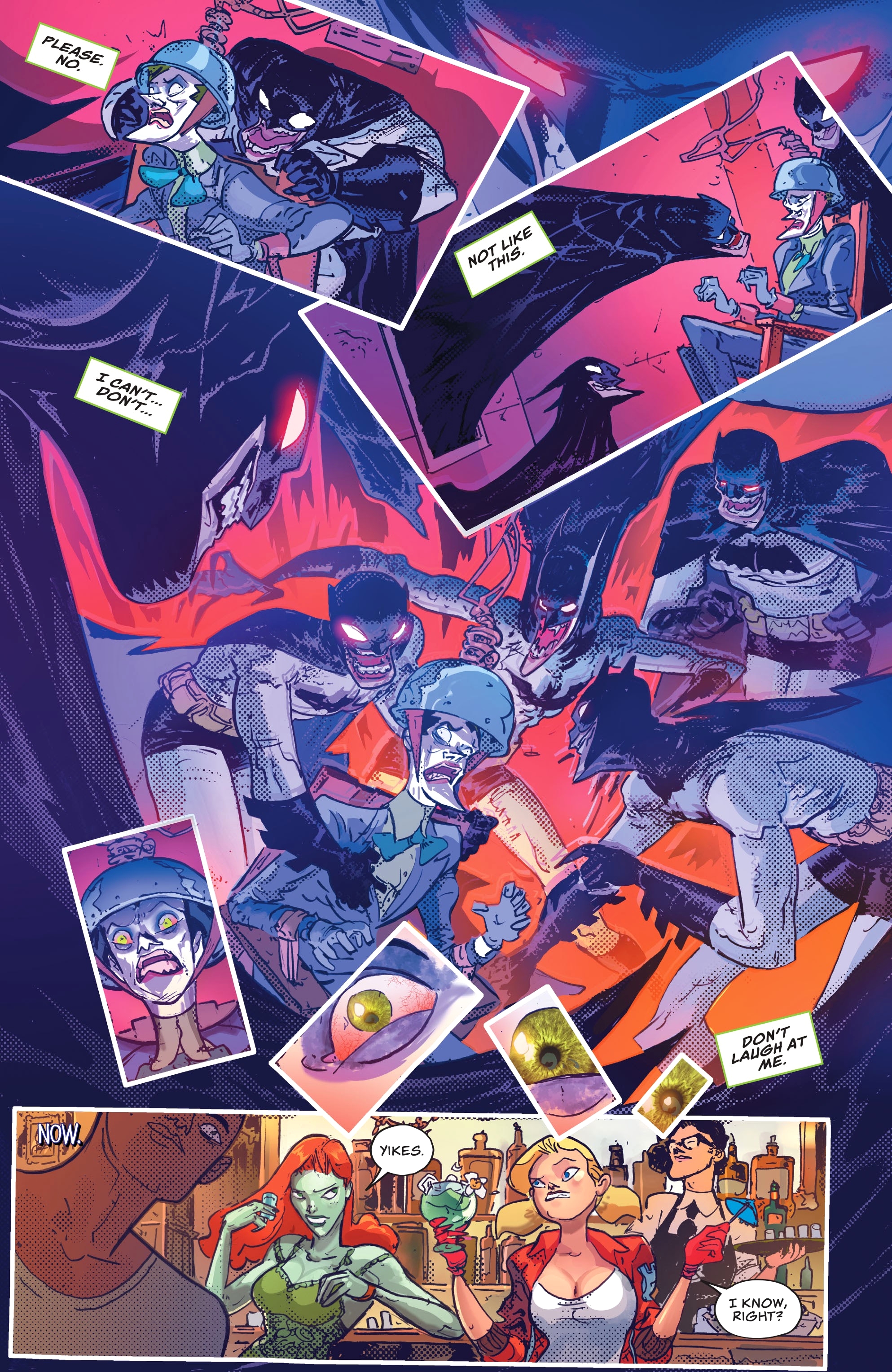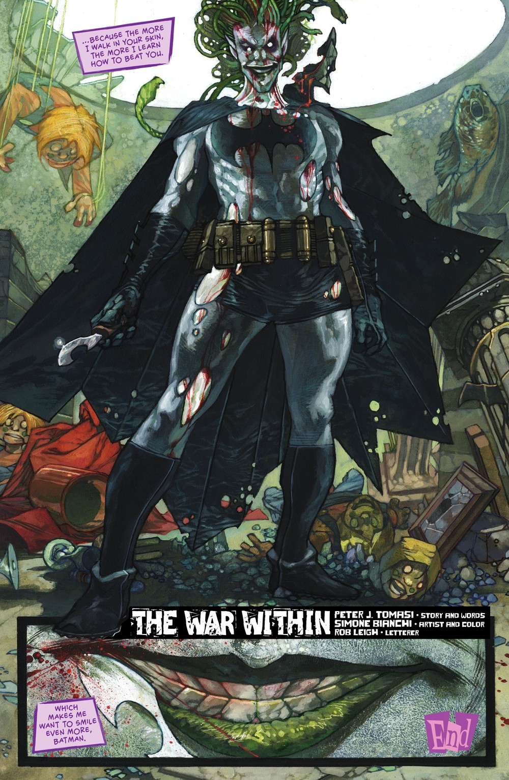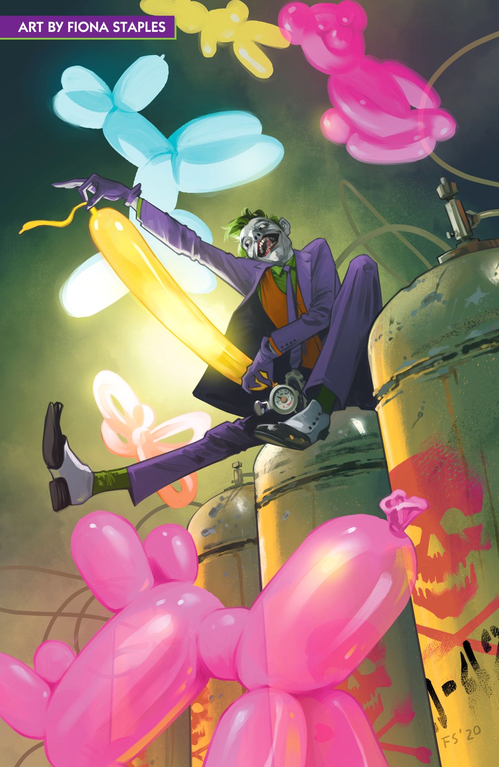 Оказывается, всё это время шкафу сидел Джей. Он устроил проверку, готова ли новая протеже, Панчлайн, к серьёзному, точнее по-настоящему забавному делу. Продолжение читайте в томе Бэтмена.