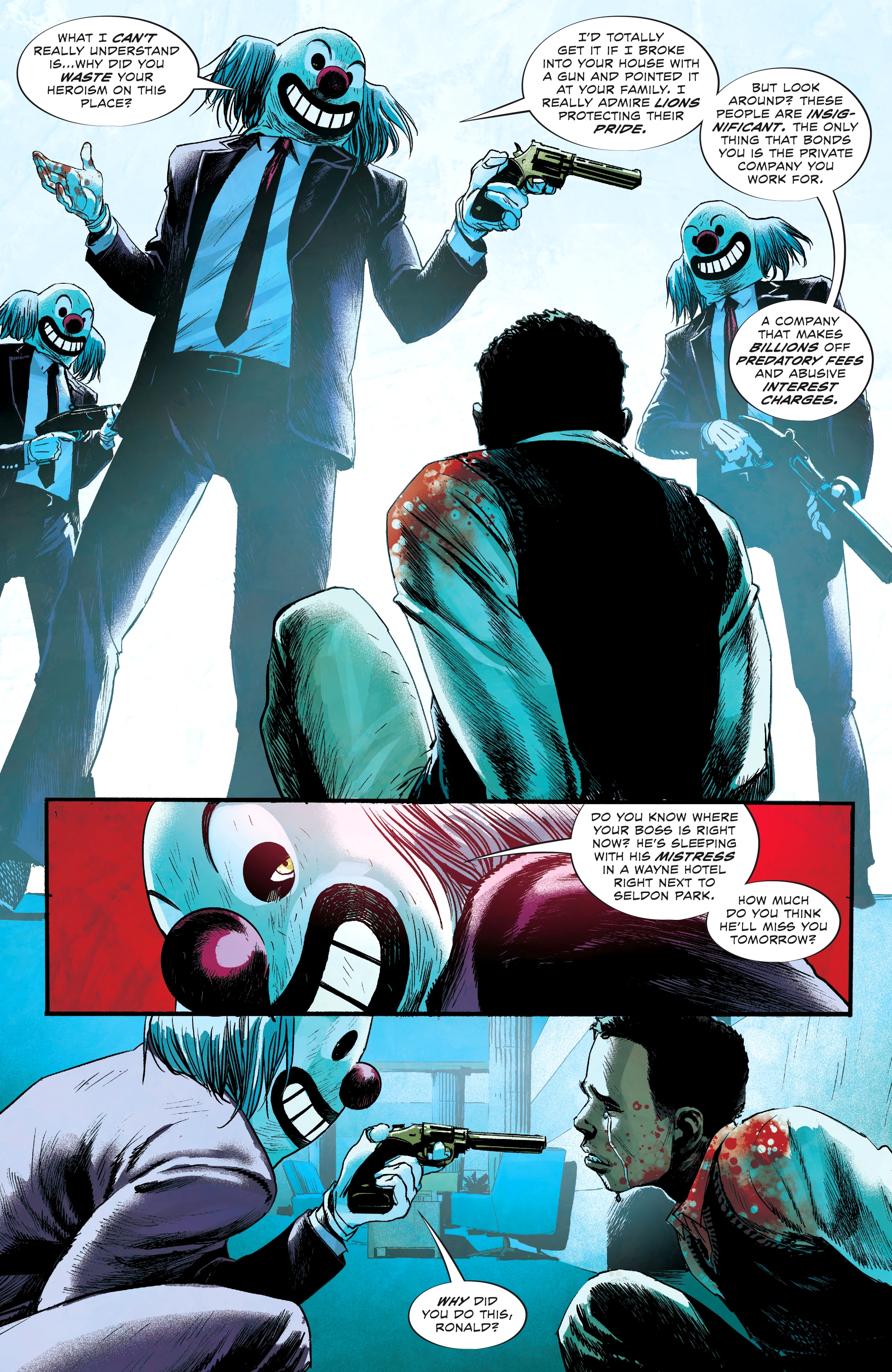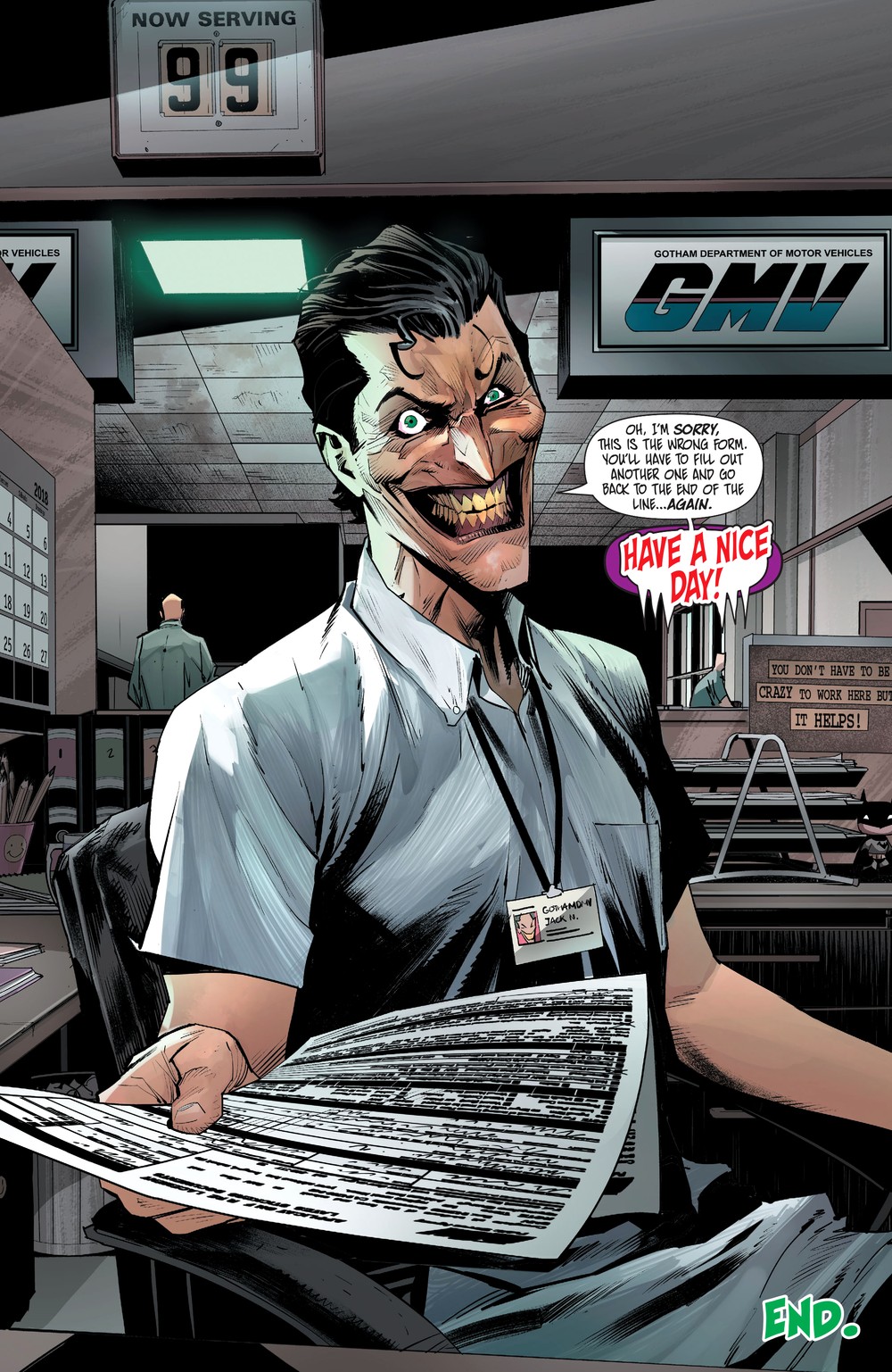 Джокер со своей бандой грабит банк. Преступники унижают заложников тем, что их жизнь ничтожна, и корпорации расцветают за счёт нищеты жалких бюрократов. Один клерк бросается спасти людей и убивает одного бандита. Жокей спрашивает, в чём был мотив. Понимает, что перед ним один из настоящих героев, к которым клоун всегда питал слабость. Поэтому он оставляет ему жизнь, расстреливает своих приспешников и уходит.