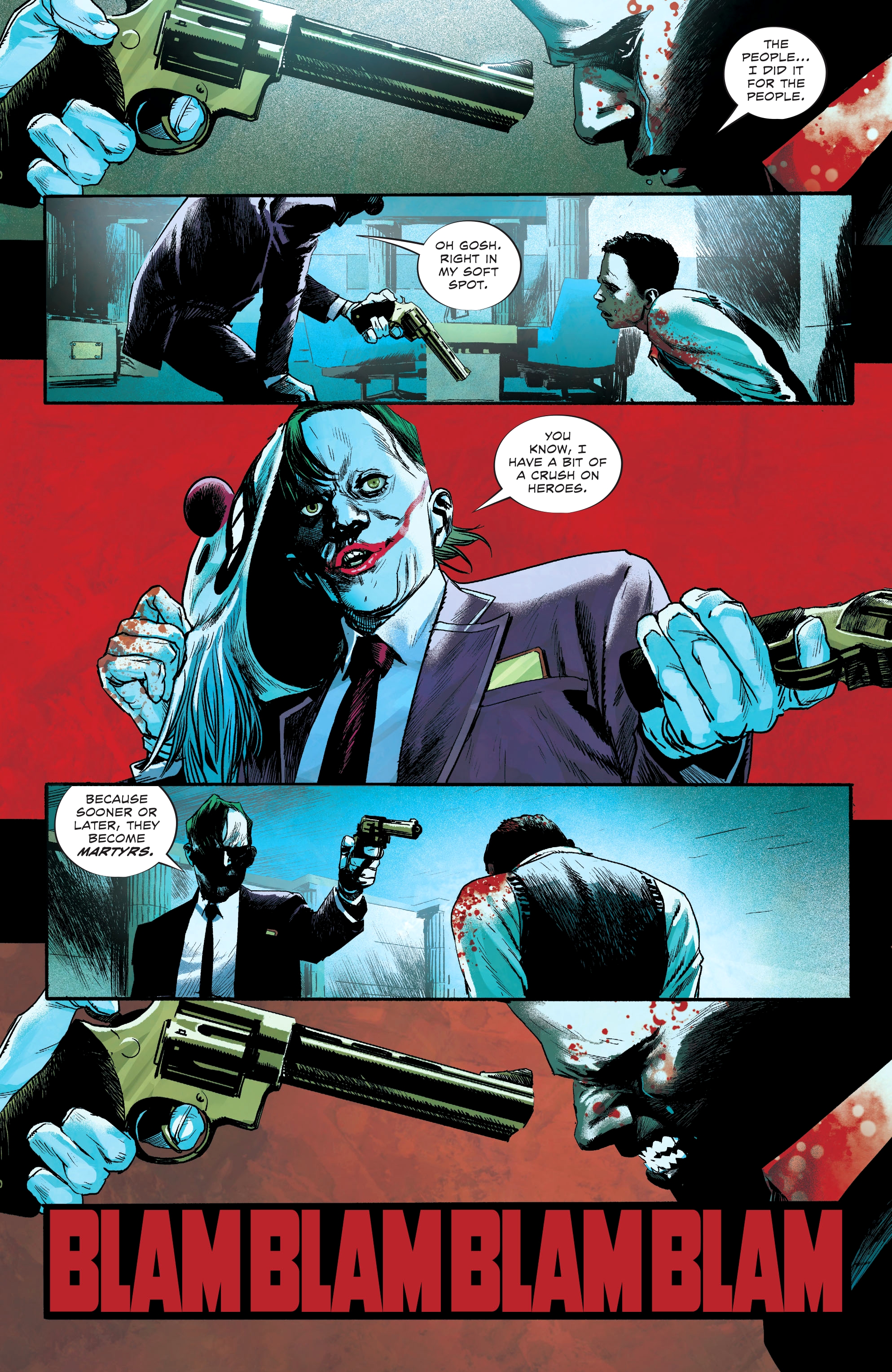 Таких средств оказывается достаточно, чтобы принести демократию, но в этом нет ничего смешного. Поэтому после завершения операции Джокер убивает недавних союзников.