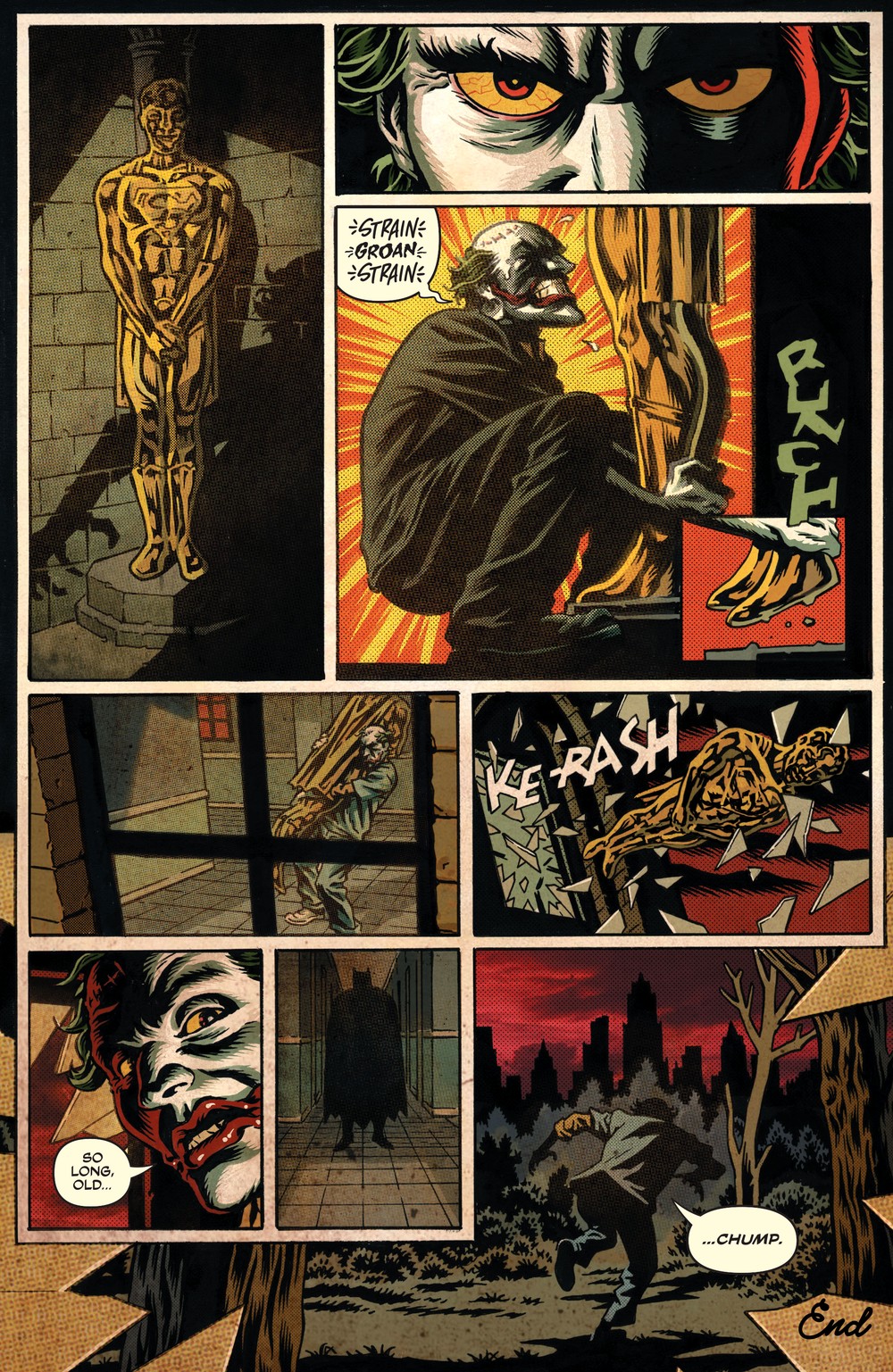 Символично, что данная история последняя в сборнике. По моему мнению, она лучшего всего иллюстрирует маркетинговую стратегию DC. Нашего любимого злодея заперли, порезали на куски и пихают в антологии с посредственными историями.