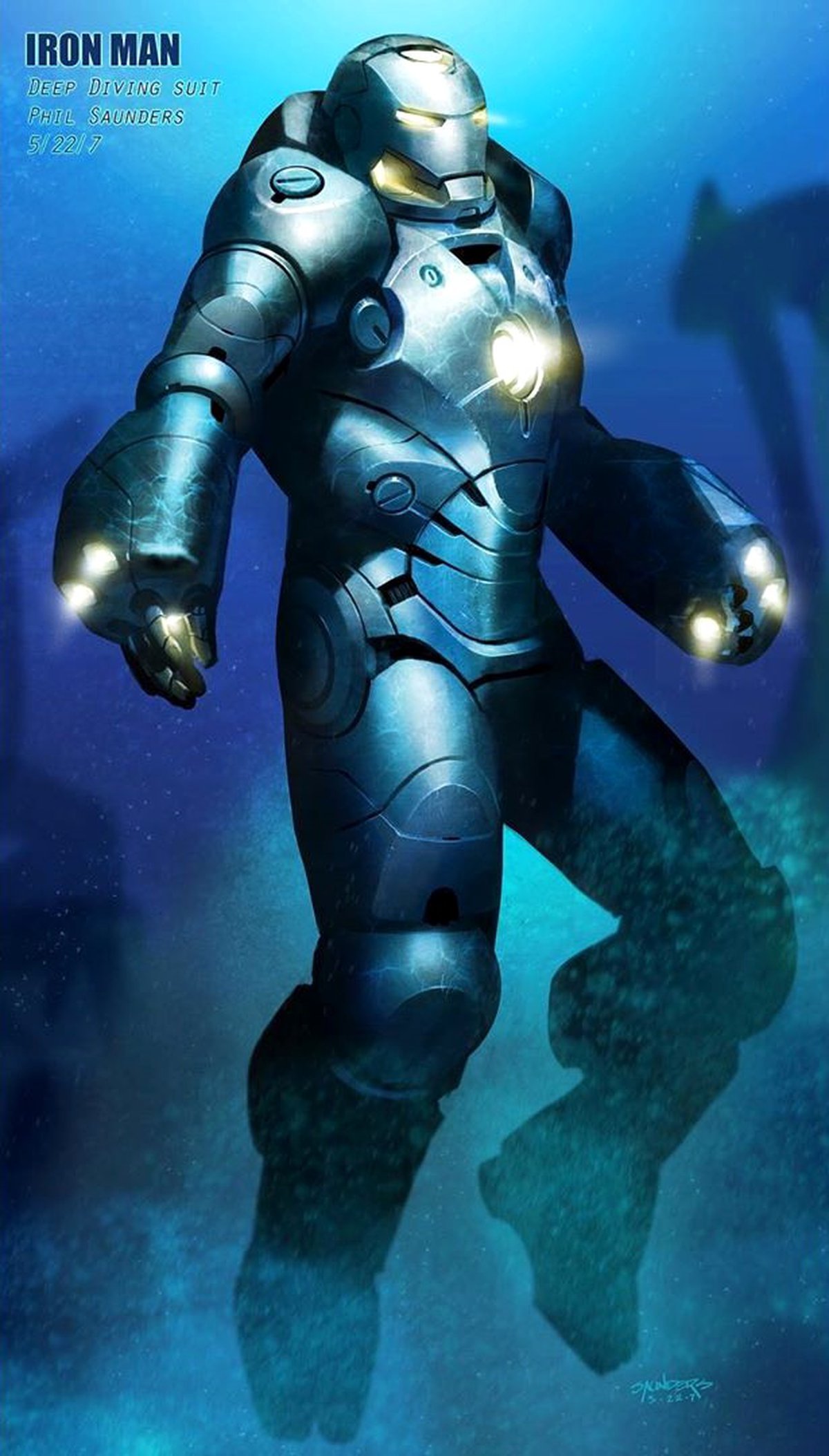 Концепт-художник Фил Сандерс, много лет сотрудничающий с Marvel Studios, выложил арты с подводной броней Железного человека, Mk37 Hammerhead. Хотя впервые ее показали только в третьей части фильма, костюм создали задолго до этого.