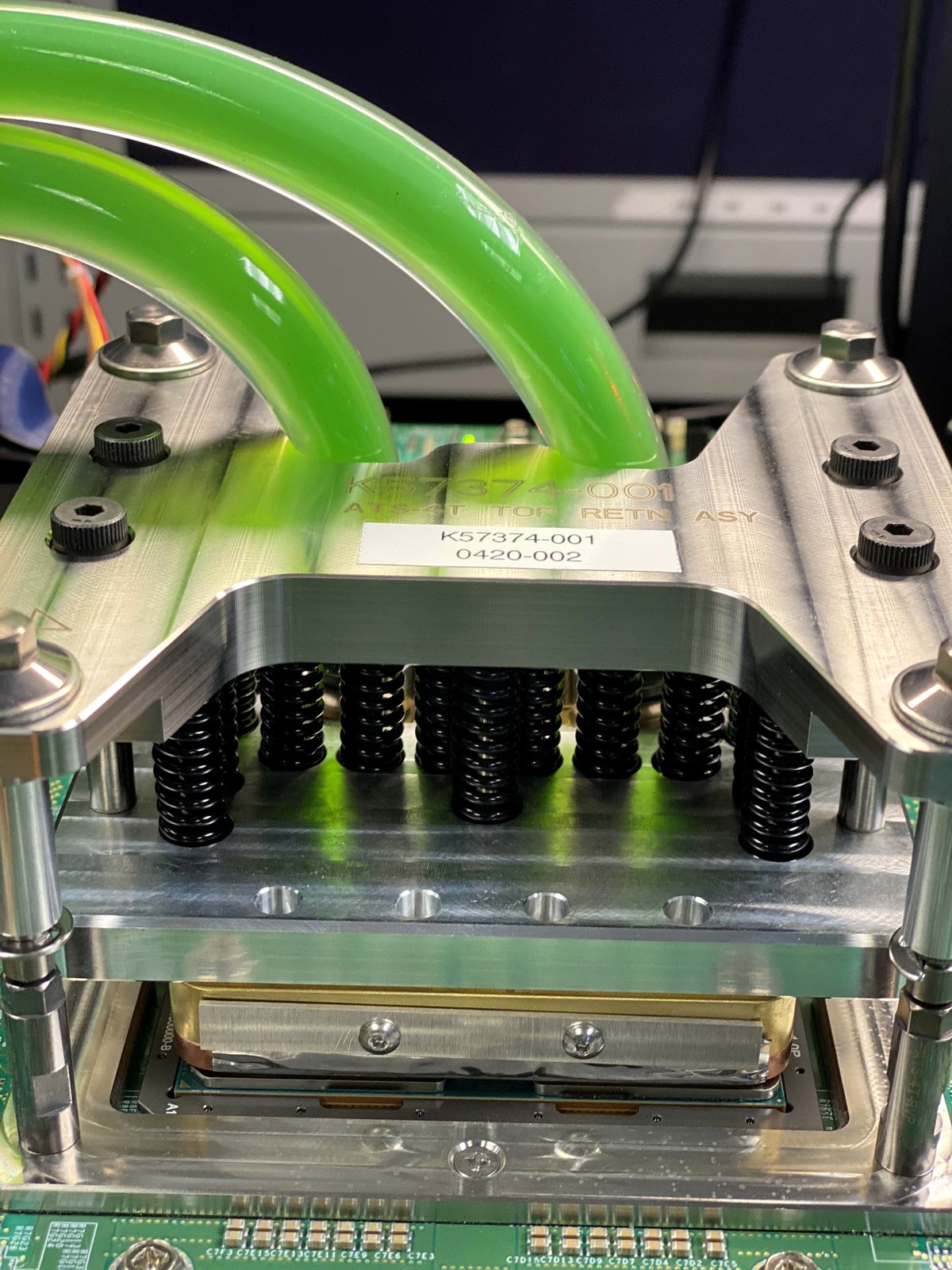 Похоже, для охлаждения тестовых семплов используются жидкостные системы. Кодури не стал рассказывать, какие именно чипы находились в лаборатории, но показал их без установленной системы охлаждения.
