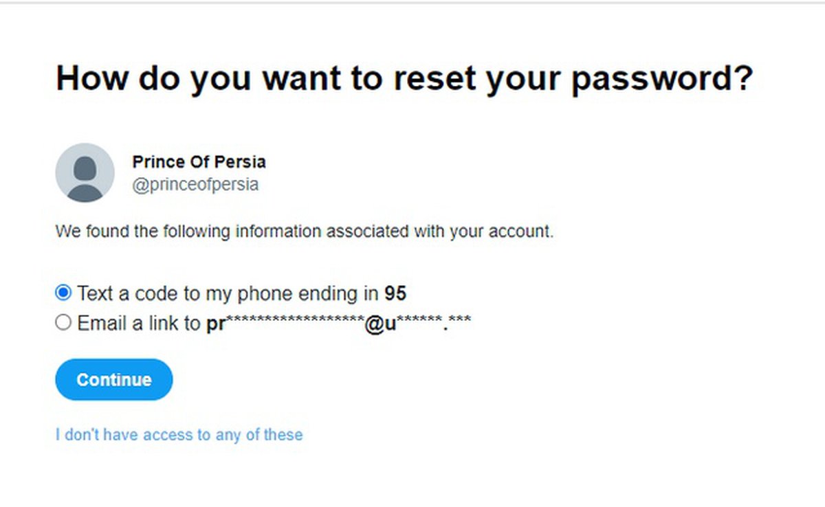 Игроки пришли к такому выводу, запросив восстановление пароля для аккаунта. Твиттер не раскрывает, на какой адрес электронной почты уйдет письмо, отправляемой в таком случае, но показывает первые и последние буква этого адреса.
