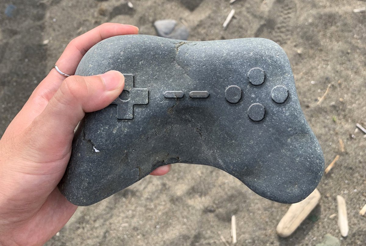Житель Японии, пишущий в твиттере под ником cbr6w, прогуливался по пляжу и нашел необычный камень, по размеру и форме напоминавший геймпад одной из консолей. Он выложил фотографию — и камень тут же стал знамениты.