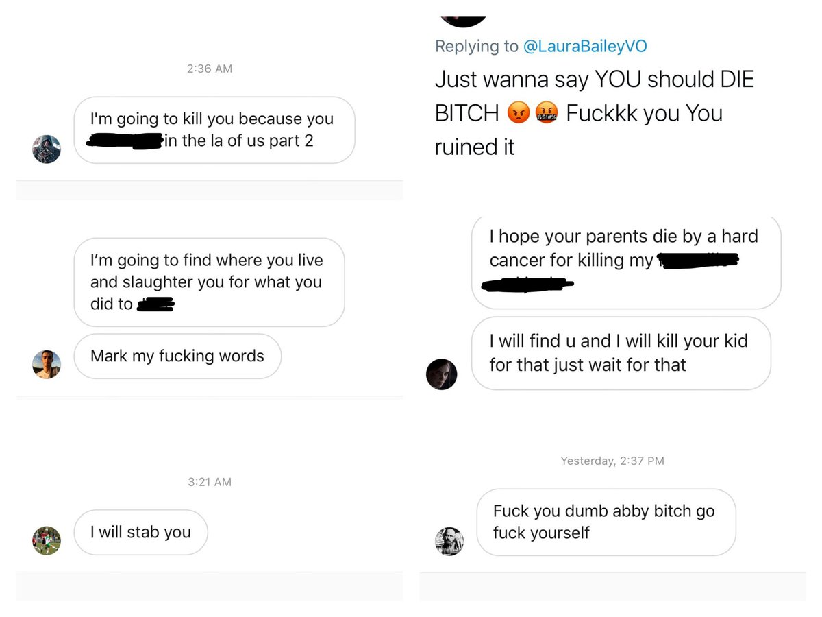 Актриса Лаура Бейли, сыгравшая в The Last of Us 2 Эбби, рассказала об угрозах, поступающих в ее адрес. Некоторые из игроков были так недовольны сюжетом сиквела, что перенесли свое негодование с персонажа Бейли на саму актрису.