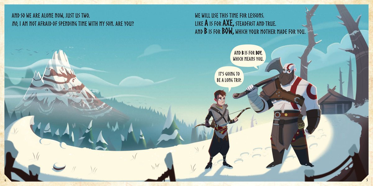 В интервью Polygon Ромина Темпест рассказывает, что они с Робинсон старались не описать сюжет игры, а воссоздать отношения Кратоса и Атрея. Хотя значительную часть азбуки можно читать с детьми, несколько страниц им лучше не показывать.