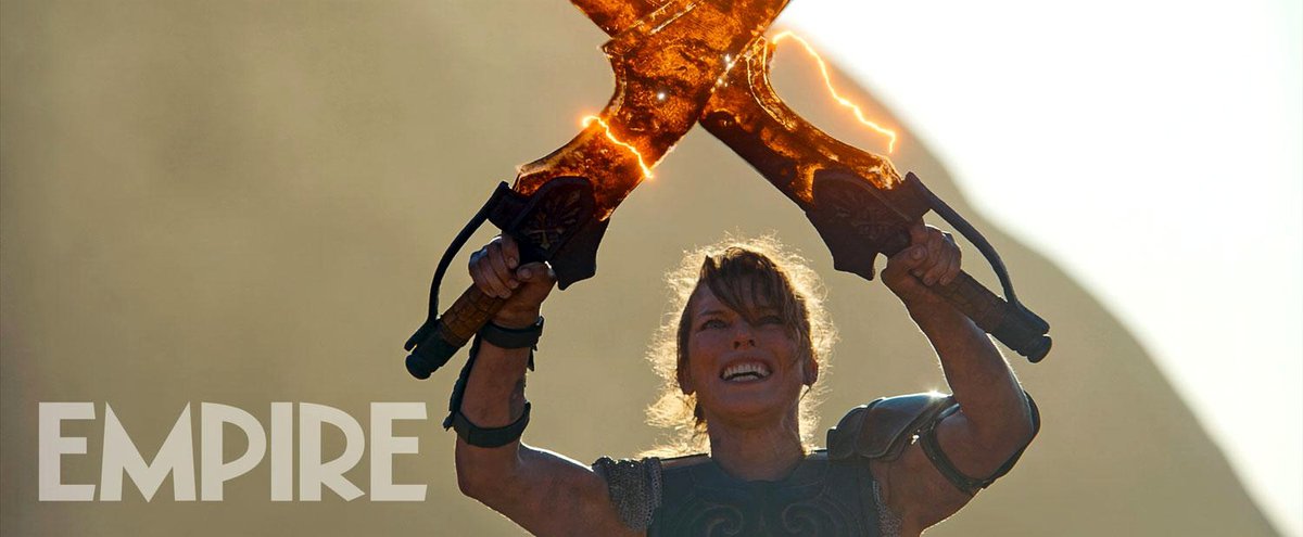 Журнал Empire опубликовал новый кадр из экранизации Monster Hunter. Милла Йовович, играющая в фильме главную роль, позирует здесь с парой огненных мечей.