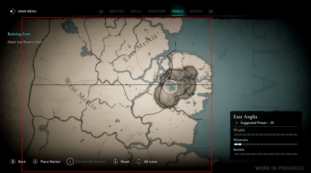 А вот так выглядит наиболее полная из доступных на данный момент карт игрового мира. Здесь видны еще два крупных региона, Западная Мерсия и Восточная Мерсия. В таком масштабе на карте все еще присутствует ближайшая точка быстрого перемещения, это позволяет быстро прикинуть размеры видимой части мира.
