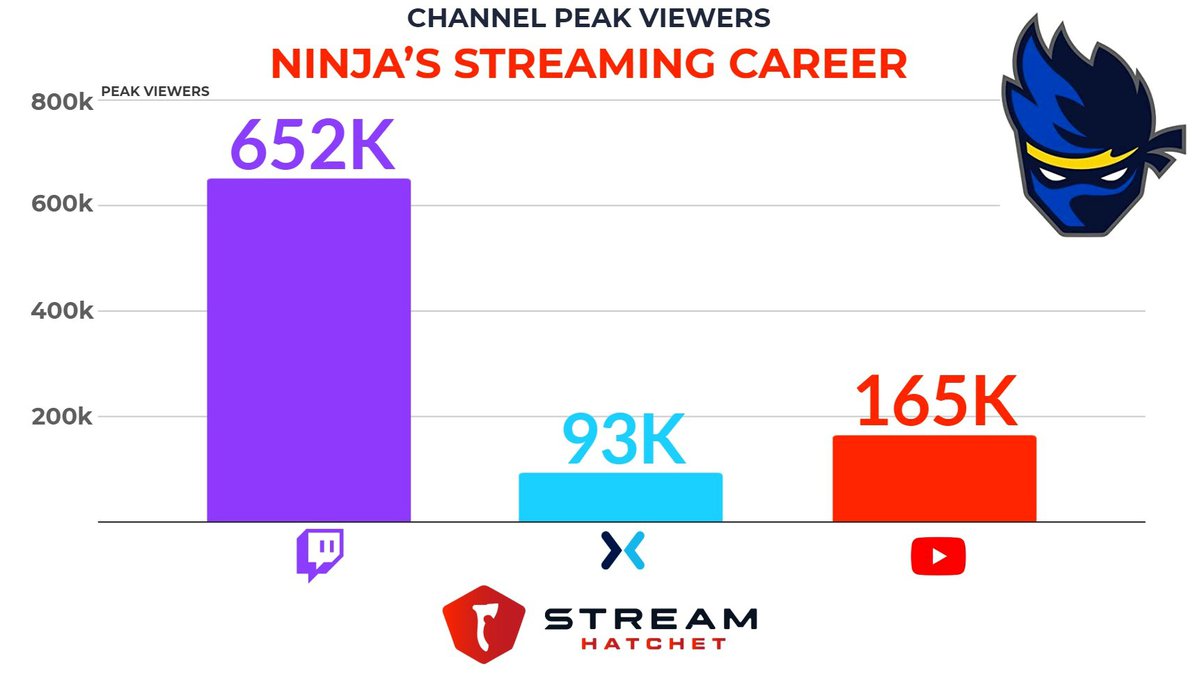 Аналитический сервис Stream Hatchet сравнил первый стрим Ninja на YouTube с показателями его трансляция на Mixer и сервисе Twitch. Оказалось, что аудитория Ninja на YouTube оказалось в полтора с лишним раза выше, чем на Mixer.