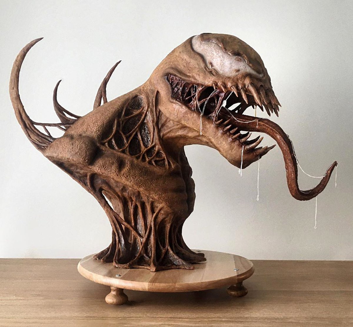 Норвежский кондитер Каролина Эриксон любит создавать необычные сладости из пряничного теста. Ей случалось делать пряничных драконов и пряничных ксеноморфов, последняя работа Каролины — сладкий Веном.