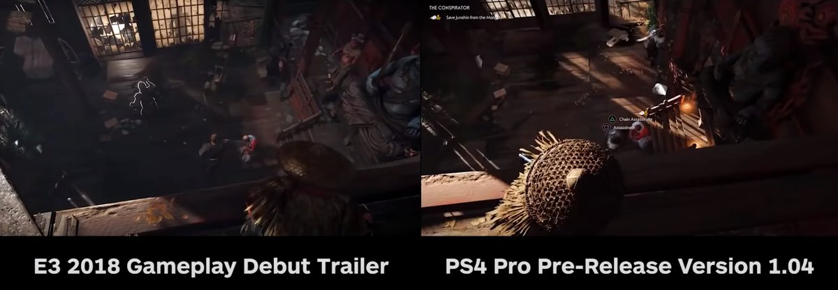 Ghost of Tsushima полноценно показали в июне 2018 года, за два с небольшим года до релиза. Перед выпуском игры журналисты IGN отыскали в предрелизной версии места и сцены из геймплейного трейлера и показали, как они выглядят сейчас.