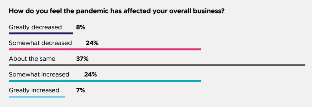 Принято считать, что карантинные меры привели к заметному росту выручки игр. Однако лишь 31% опрошенных заявили, что пандемия положительно повлияла на их бизнес; 37% опрошенных не заметили разницы, у 32% опрошенных пандемия привела к ухудшению бизнес-показателей.