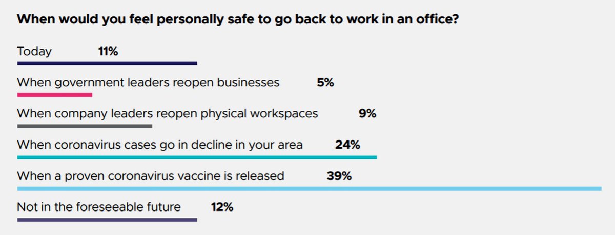 Согласно опросу, около трети компаний не планируют открывать офисы после завершения пандемии: разработчики продолжат работать удаленно. Большая часть самих разработчиков считает, что вернуться в офис можно будет только после появления вакцины.