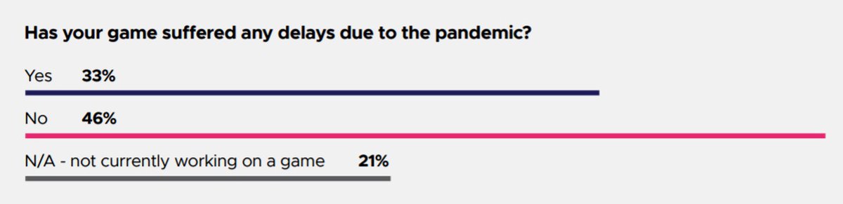Эпидемия заметно повлияла и на самих разработчиков, и на проекты, которыми они занимаются. Каждый третий разработчик сообщил, что его проект пришлось задержать; около 21% опрошенных сейчас вообще не работаю над новыми играми.