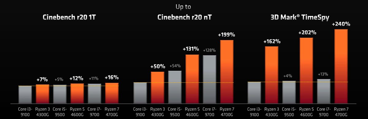 AMD анонсировала Ryzen 4000 с интегрированной графикой и сравнила их со старыми процессорами Intel