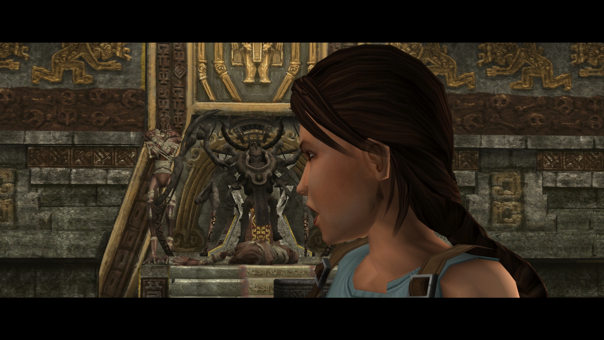 3. Внешний вид Куалопека. Нет, речь пойдёт не о сравнении его усохшего и его же из воспоминаний через сцион (наследие). Дело обстоит очень неоднозначно, и увидеть данную причуду очень непросто, а в некоторых случаях просто невозможно. Ближе к делу: когда Лара врывается в штаб-квартиру Натлы и включает запись Ларсона, в этот момент видно, что Куалопек немного отличается от того, что мы видели пару минут назад. Он более яркий, его узор выделяется и ткань ярко красная, а мумии (создания Атлантиды), стоят в ином положении. К сожалению, увидеть данную особенность смогут только лишь обладатели версии для PC и PlayStation 2. Всё потому, что в PSP версии всё очень плохо с текстурами, а в ремастеред-версиях наложен сильный эффект шума и черезстрочности. Вглядываться придётся через лупу...