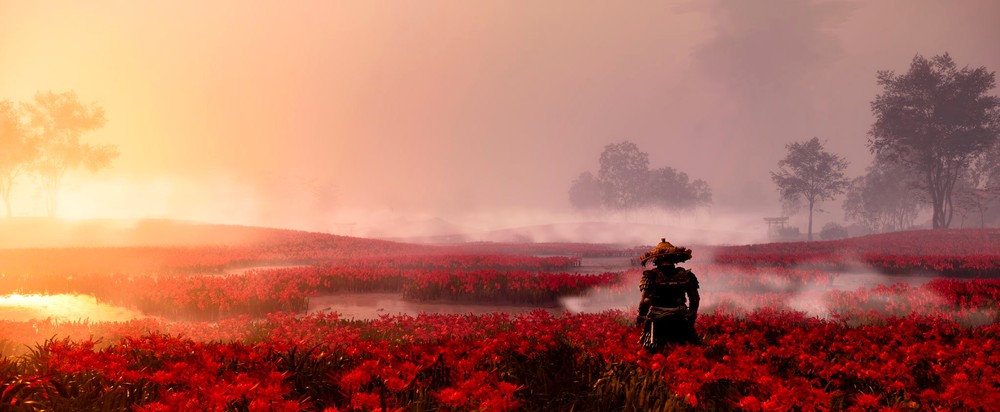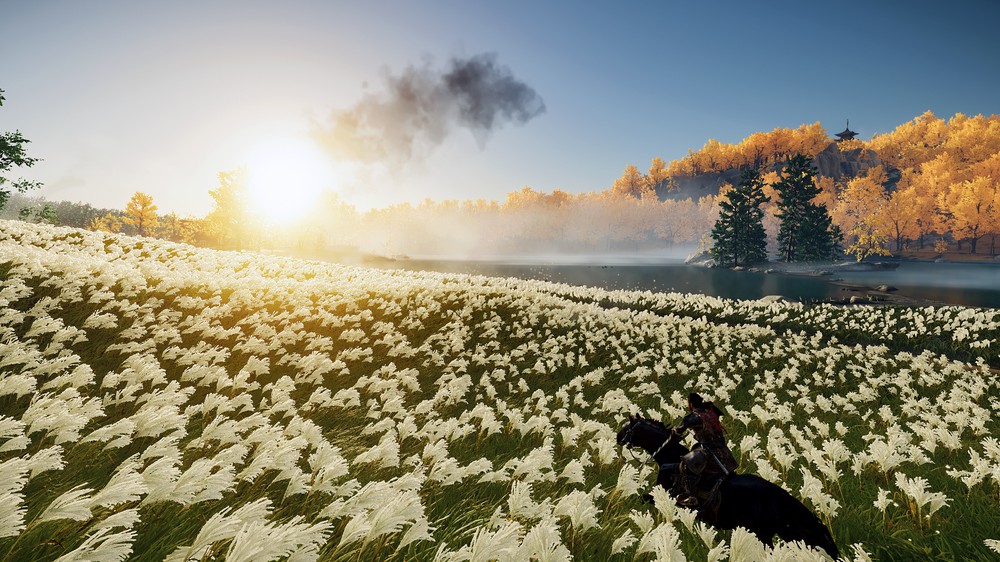Ghost of Tsushima очень красива. В динамике игра может выглядеть довольно сумбурно, но когда над Цусимой встает солнце, а Дзин неторопливо спускается в какую-нибудь долину, перед ним могут простираться фантастические пейзажи.
