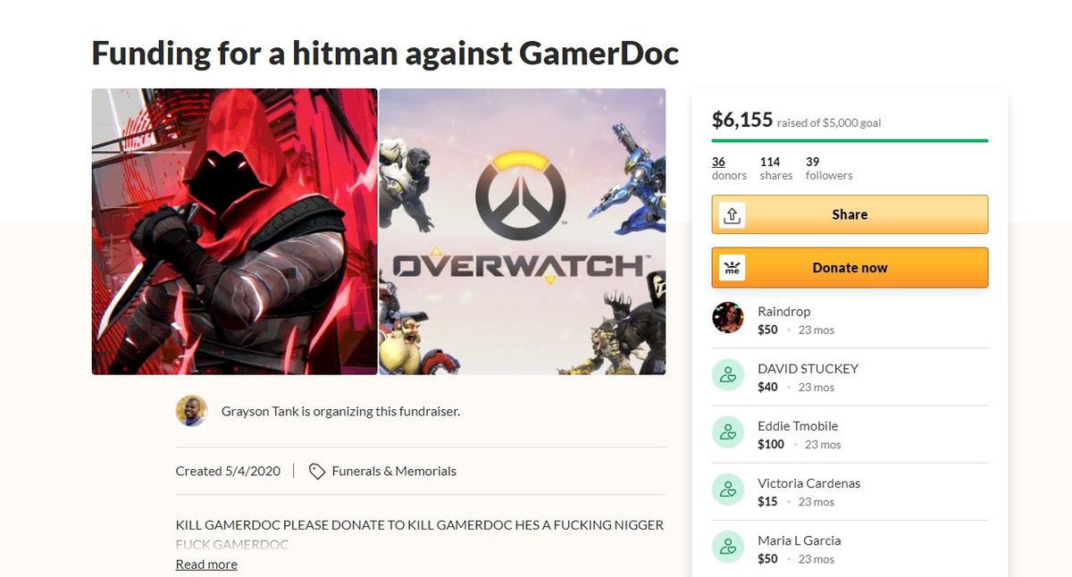 Эффективность оказалась настолько велика, что в какой-то момент на GoFundMe появилась краудфандинговая кампания, целью которой был найм киллера — от него требовалось устранить GamerDoc. Кампания собрала как минимум $6155, прежде чем была закрыта администрацией сервиса.