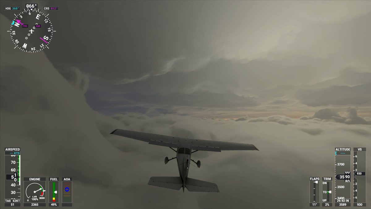 Буря, отмечает Мартин, и ощущалась, и выглядела очень реалистично. На аэродроме, когда он готовился взлетать, дождь хлестал едва ли не горизонтально, а ветер буквально сдувал самолет с взлетно-посадочной полосы.