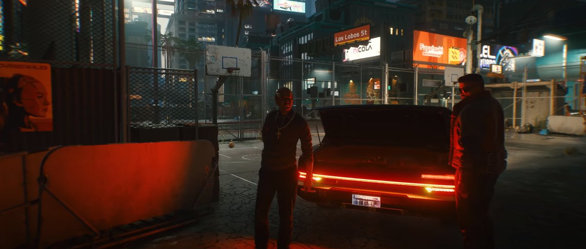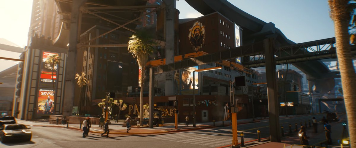 На баннере вдалеке — ковбой, большой любитель молока, срисованный с Марка Хэмилла из «Последних джедаев». Мы видели его в артбуке The World of Cyberpunk 2077.