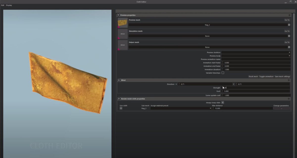 С помощью этого инструмента настраиваются параметры симуляции для объектов, которые игрок хочет сделать тканевыми. Например, флагов, ковров или плащей.