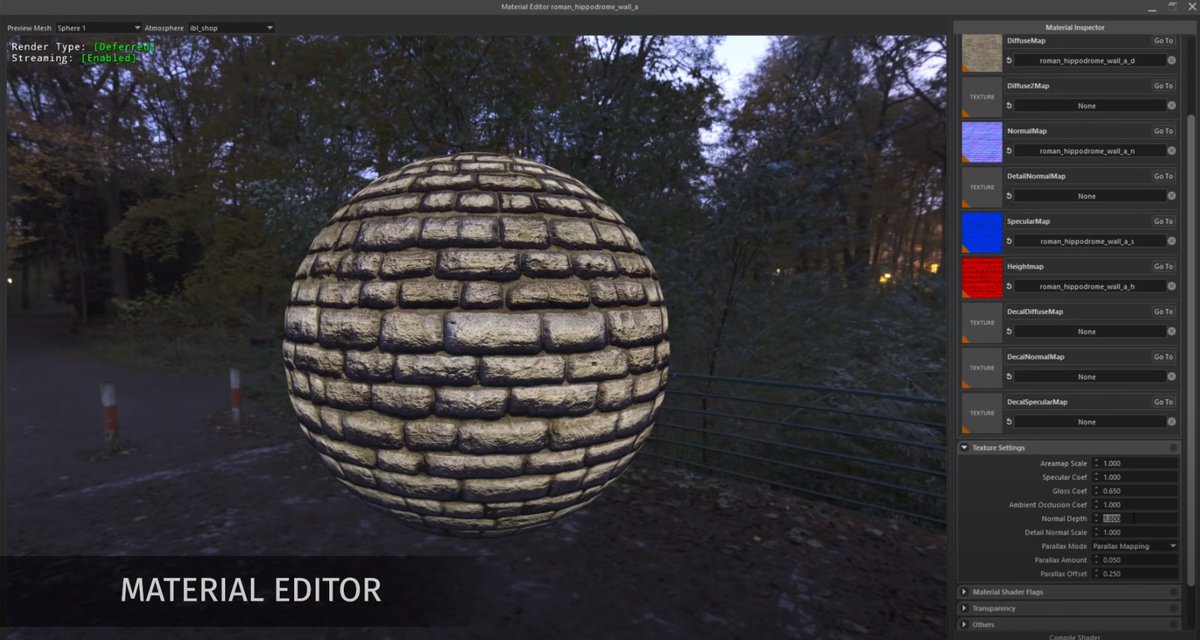 С его помощью создаются и изменяются материалы, придающие моделям реалистичность. Например, можно сделать собственный материал камня или стекла — с картами нормалей, высот и уникальными настройками шейдеров.