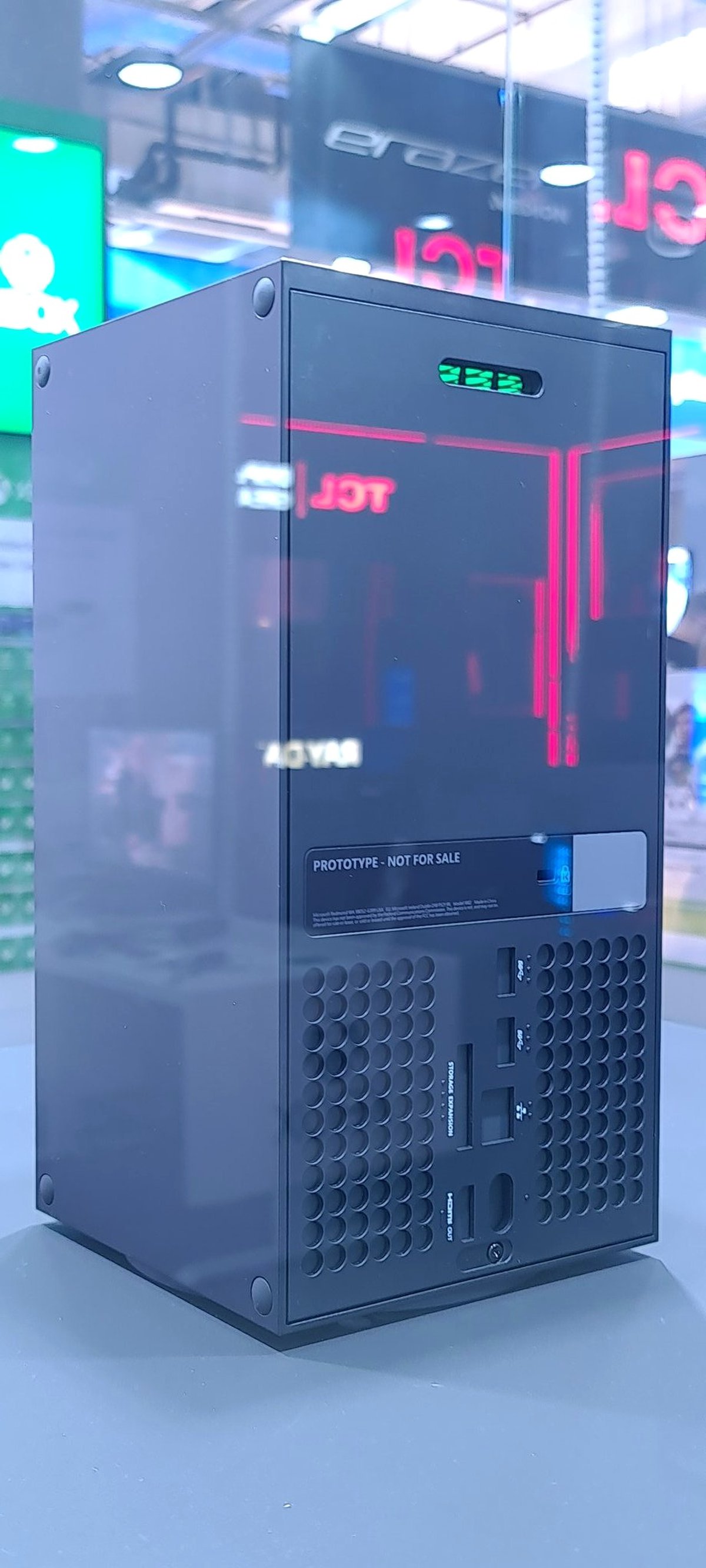 На немецкой киберспортивной арене Xperion выставили прототип Xbox Series X. Устройство стоит в закрытой витрине, судя по надписи на задней части корпуса, это прототип, а не финальная версия консоли.