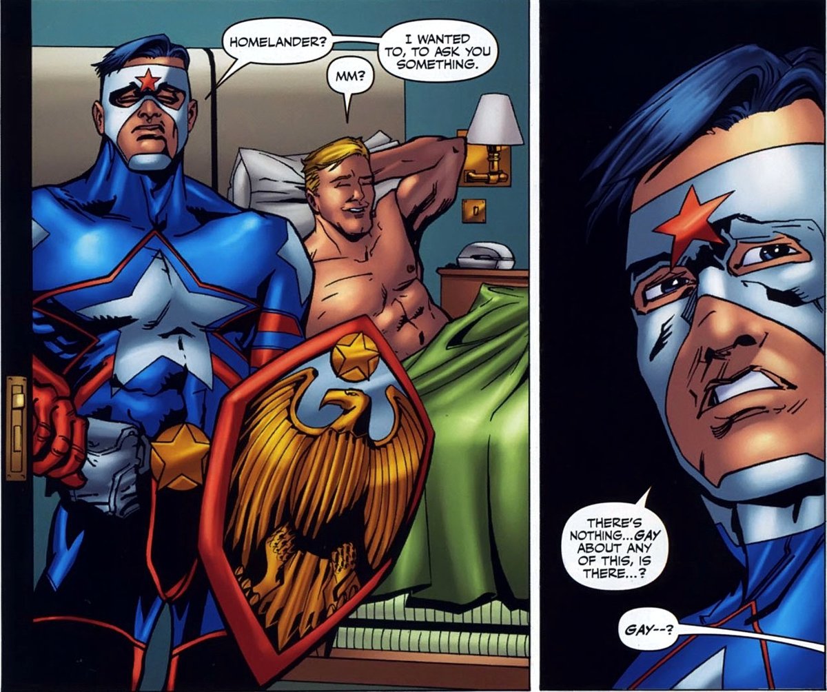 Его преемник, с которым пересекаются Пацаны, не отличается ни умом, ни храбростью. Солдатик попадает в Семерку, переспав с Патриотом, а в какой-то момент оказывается в плену у Пацанов — те пытают супергероя, чтобы добыть информацию.