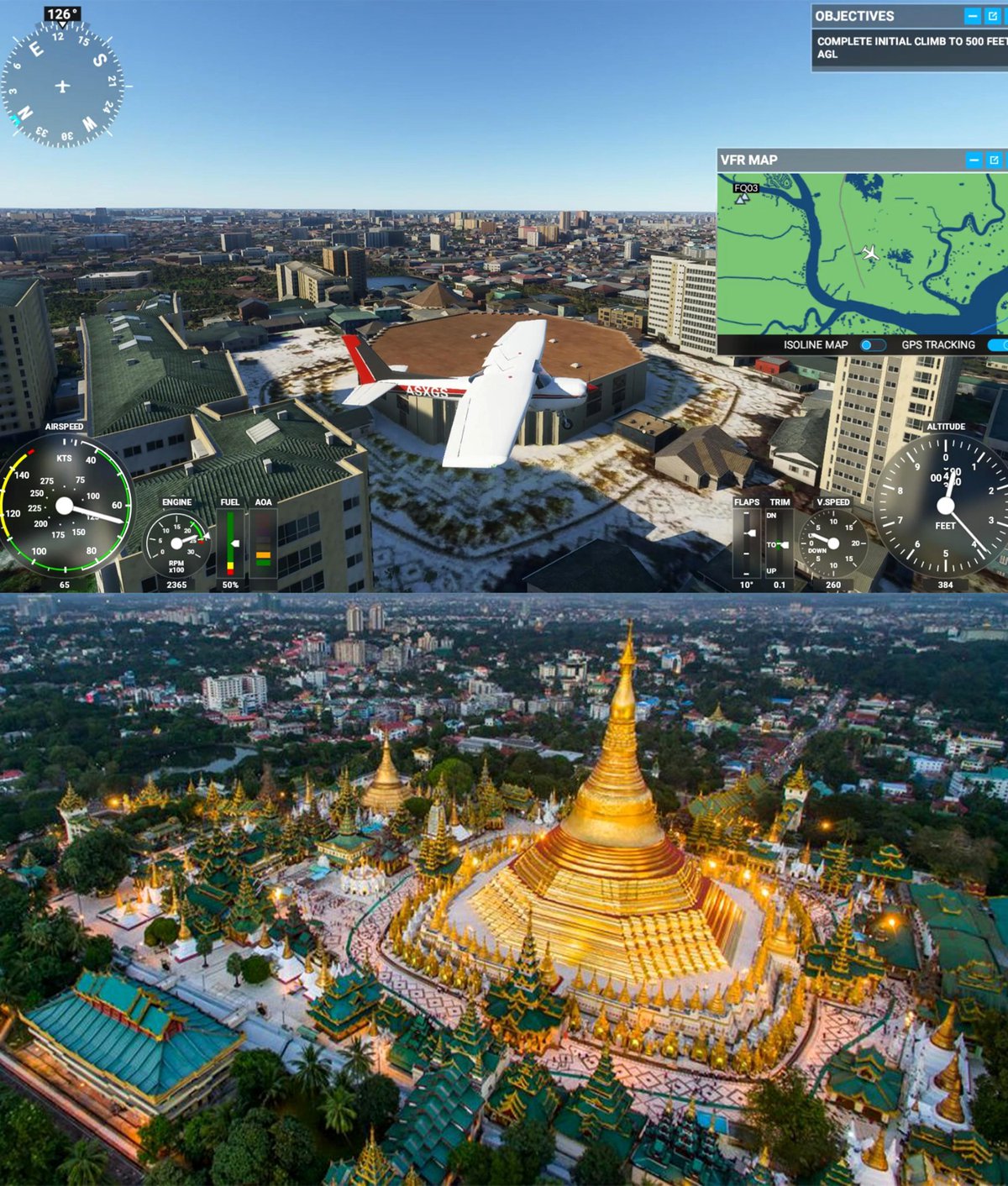 В новом Microsoft Flight Simulator наземные постройки создаются либо автоматически, на основе спутниковых снимков и других собранных данных, либо вручную — так делают модели особенно важных достопримечательностей. После выпуска игры оказалось, что до многих достопримечательностей руки пока не дошли.