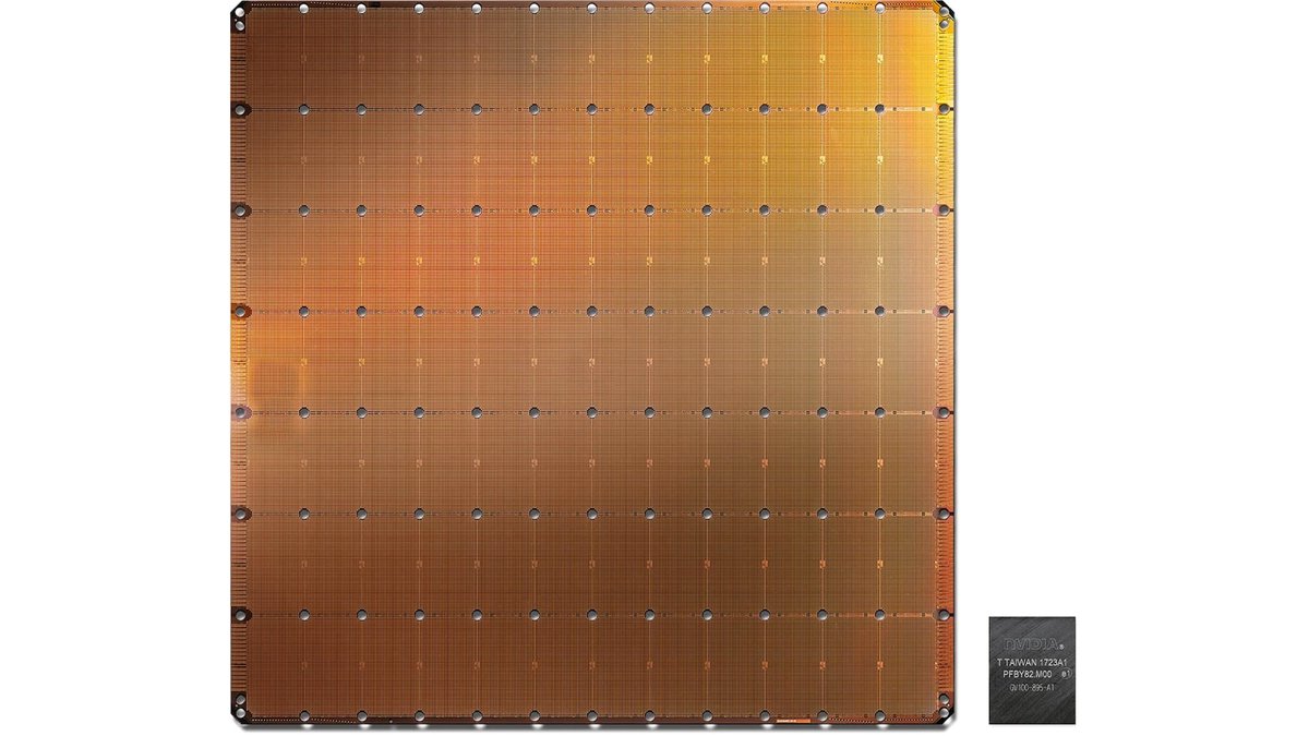 Вот так Wafer Scale Engine выглядит рядом с V100, GPU Nvidia Tesla