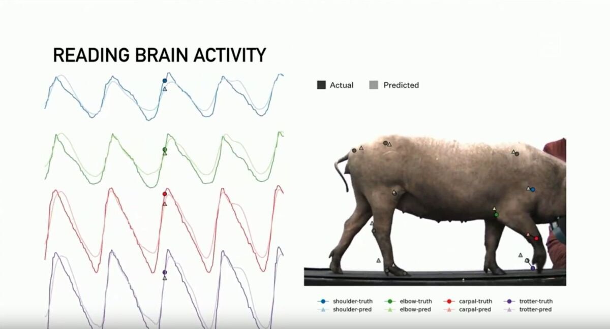 - Данные с чипа можно использовать для анализа поведения. В случае со свиньей на основе этих данных удалось более-менее верно предсказать положение ее конечностей в пространстве.