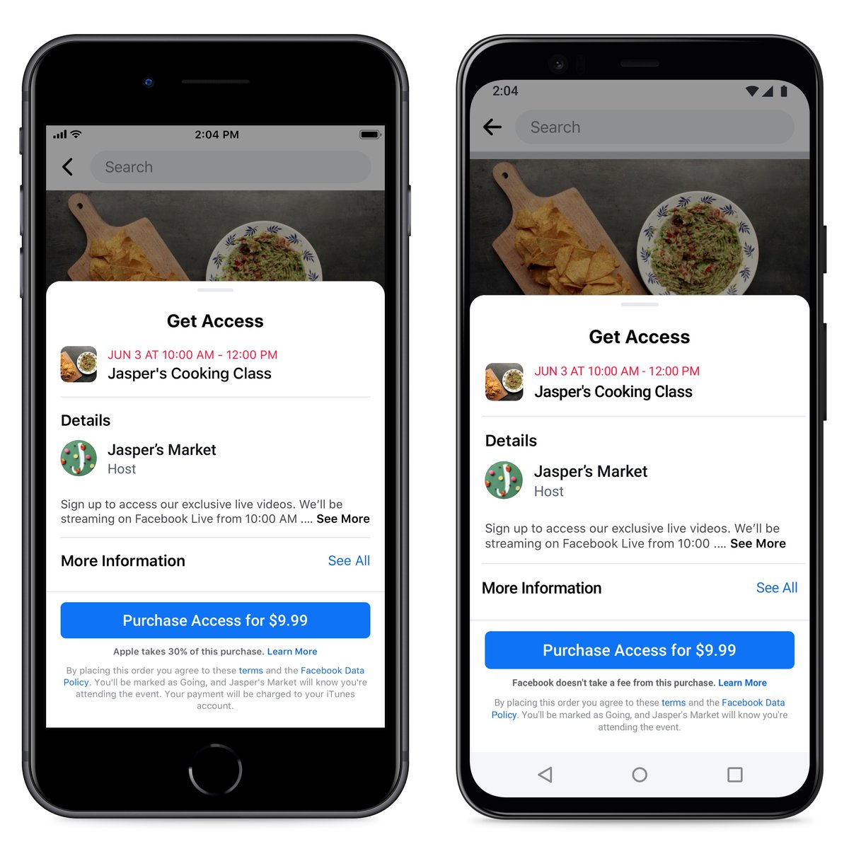 Оповещение о комиссии планировалось добавить на экран платежей, связанных с онлайн-мероприятиями. Facebook запустила платные мероприятия, чтобы инфлюенсеры и обычные бизнесмены могли зарабатывать на их проведении в условиях пандемии; предполагалось, что организаторам мероприятий достанется 100% средств, заплаченных пользователями.