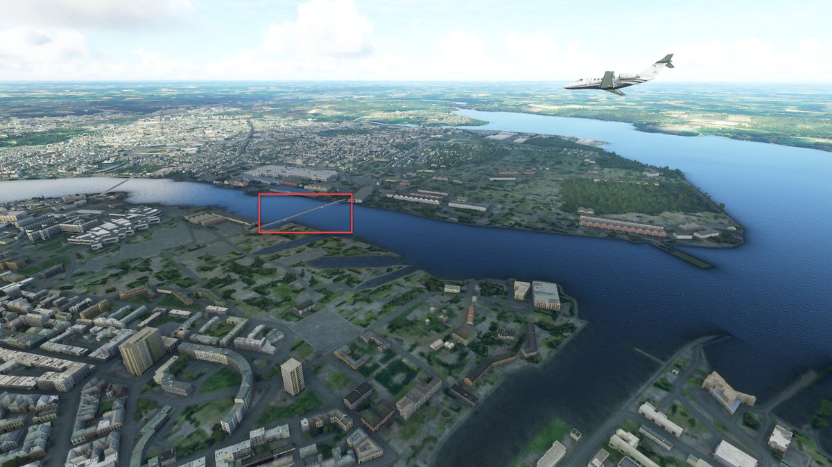 В Microsoft Flight Simulator база в Лорьяне и ее здания оказались на месте. Правда, отмечают исследователи из Bellingcat, некоторые здания базы — и, видимо, часть пирсов — алгоритмы симулятора все-таки не воссоздали.