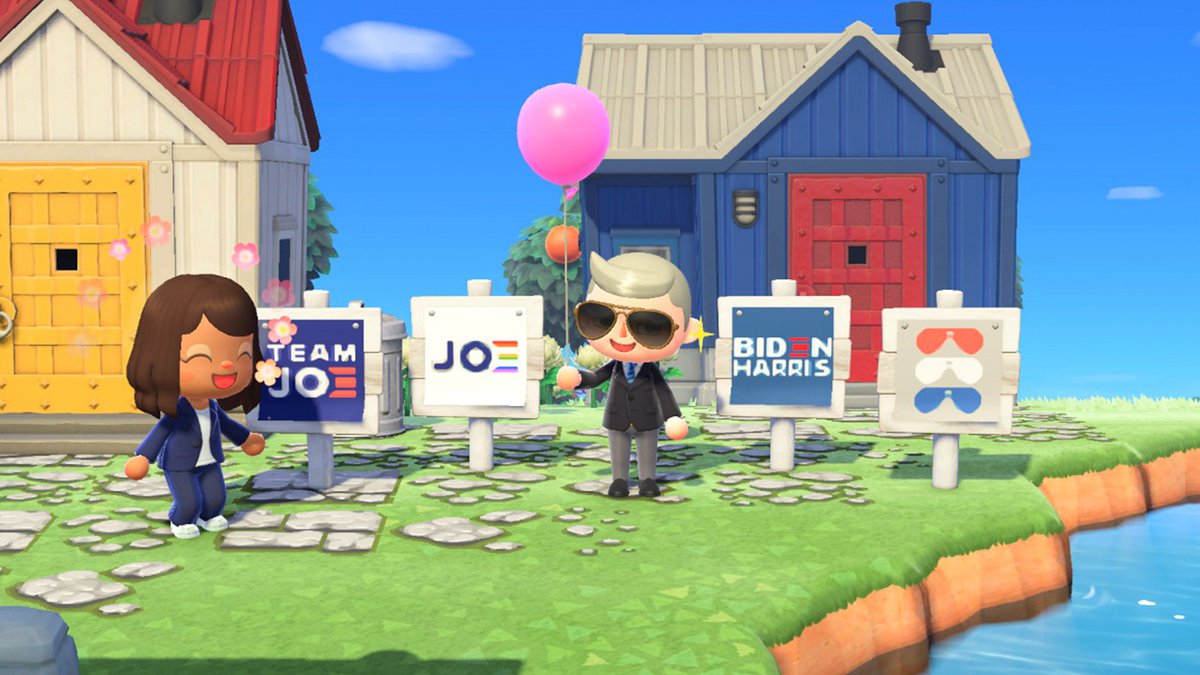 Начиная с 1 сентября игроки в Animal Crossing могут выразить поддержку Байдену и Харрис с помощью специальных баннеров с логотипами кампании. Чтобы получить доступ к баннерам, нужно отсканировать специальные коды через приложение Nintendo Switch Online.